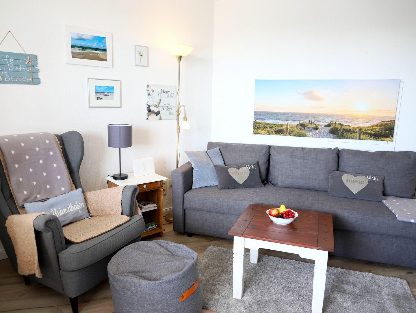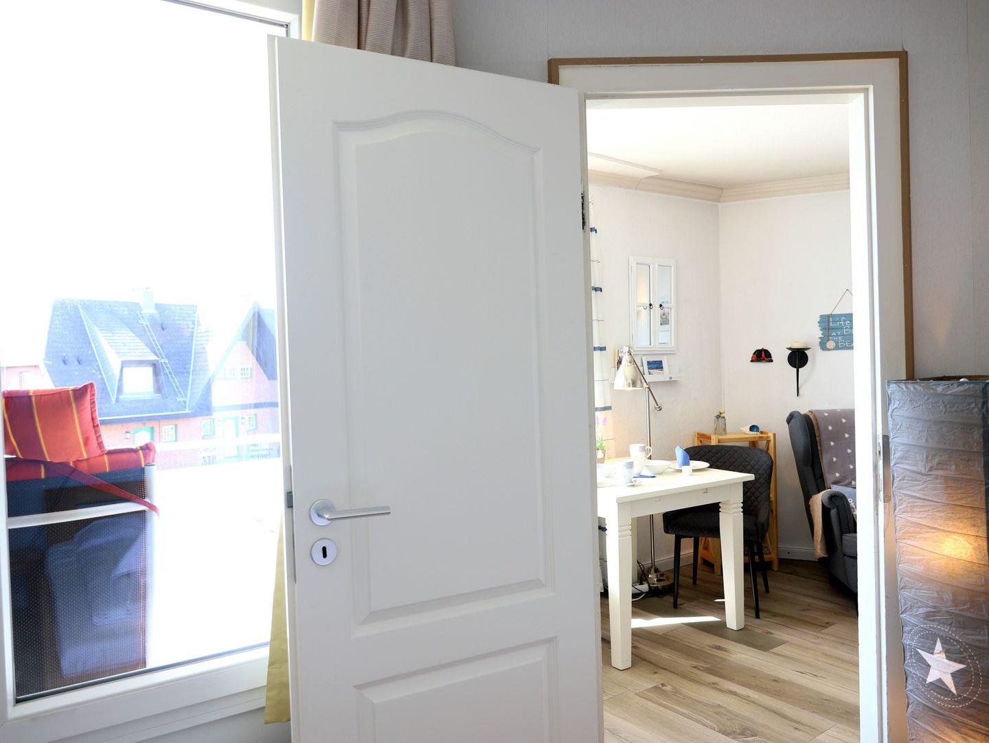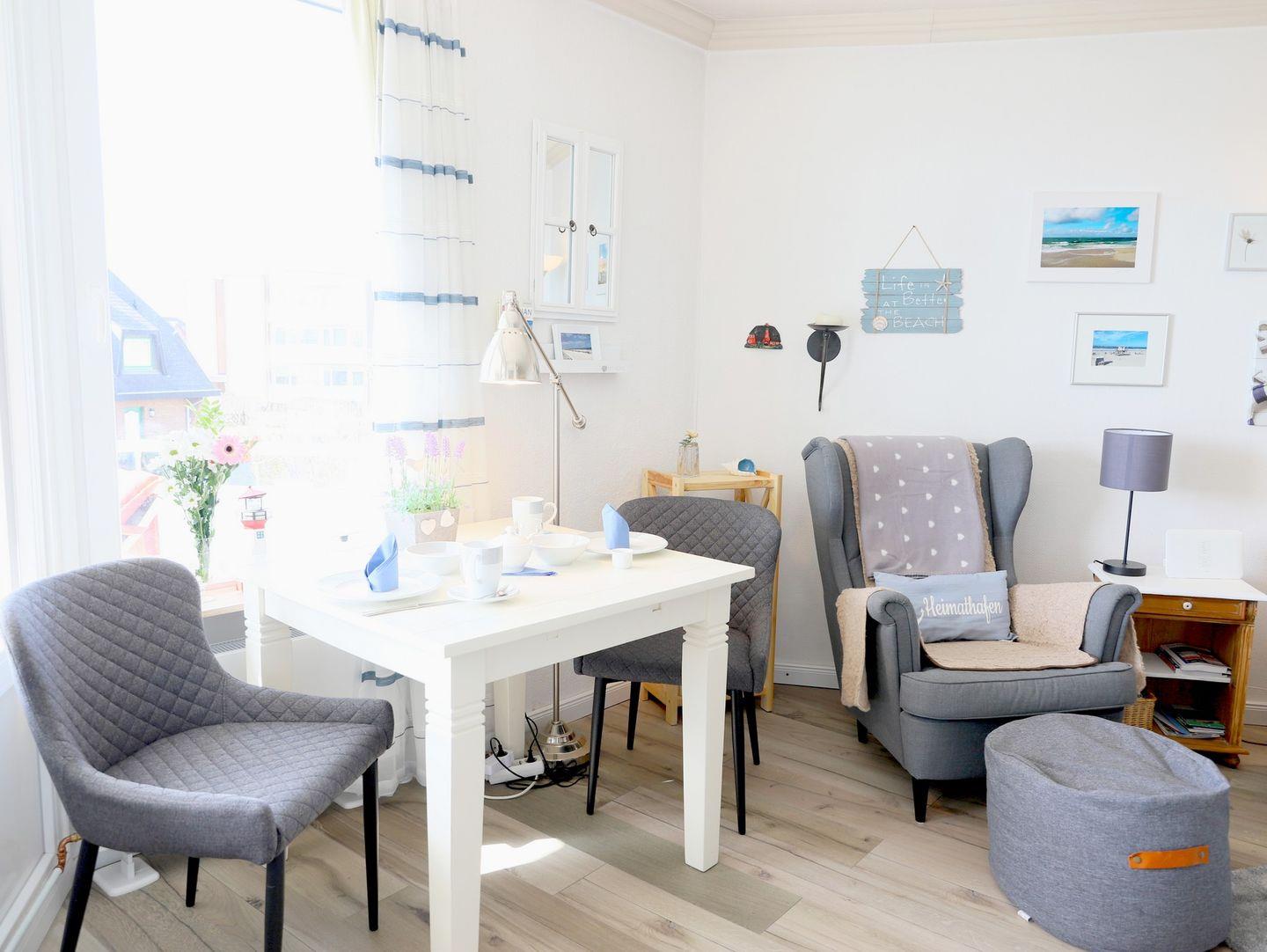 Haus Kamperhof - Lichtdurchflutete 40 m² Ferienwohnung für 3 Personen in Westerland. Ruhige Lage nahe Strand und Ortskern. Westbalkon mit Sonne ab mittags, kostenfreier Parkplatz, keine Haustiere.