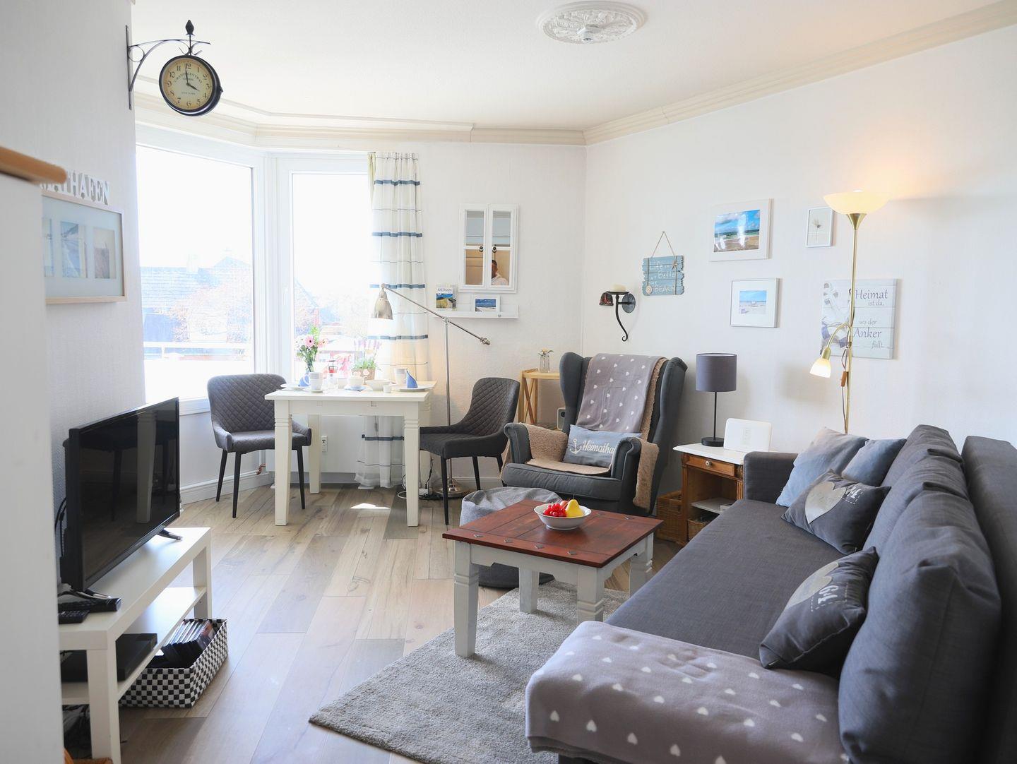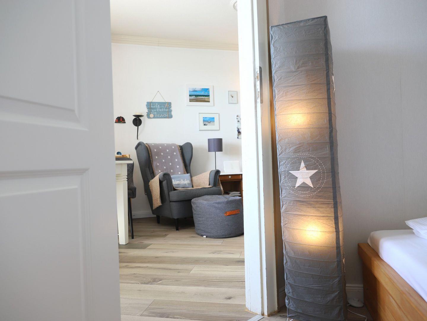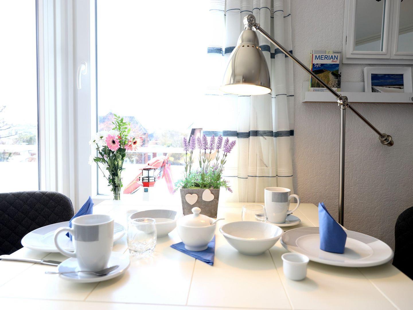 Haus Kamperhof - Lichtdurchflutete 40 m² Ferienwohnung für 3 Personen in Westerland. Ruhige Lage nahe Strand und Ortskern. Westbalkon mit Sonne ab mittags, kostenfreier Parkplatz, keine Haustiere.