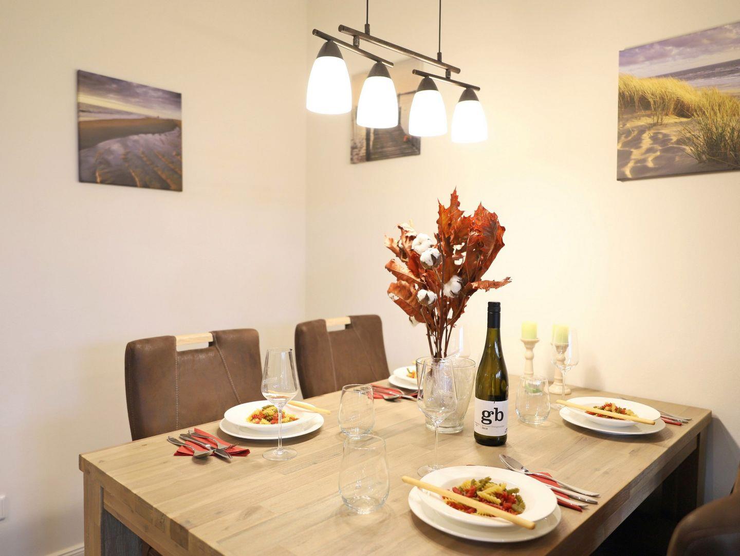 Hochwertig eingerichtete Nichtraucherwohnung im Erdgeschoss mit ca. 68 m², ideal für 2 Personen. Die Wohnung verfügt über ein Schlafzimmer mit Doppelbett, einen gemütlichen Wohnbereich und eine große Westterrasse. Ein Badezimmer mit bodenebener Dusche sowie ein separates Gäste-WC sind vorhanden. Der Garagenstellplatz, Münz-Waschmöglichkeiten im Keller und die ruhige Lage nahe Innenstadt und Strandzugang bieten zusätzlichen Komfort. Haustiere sind nicht gestattet.