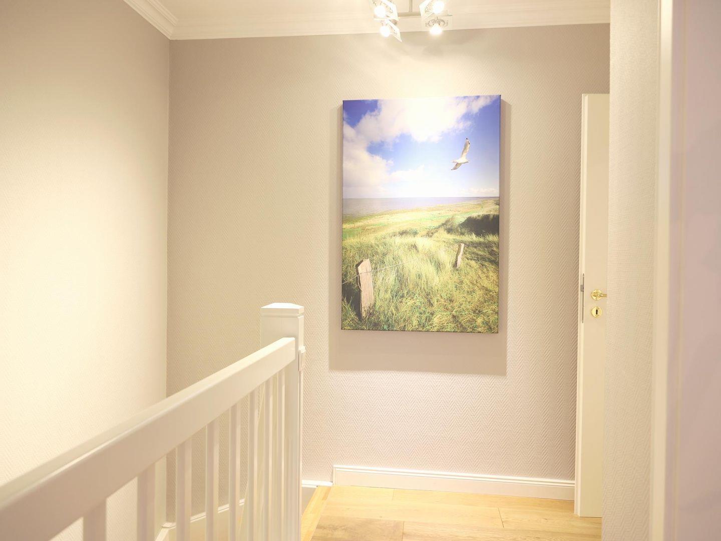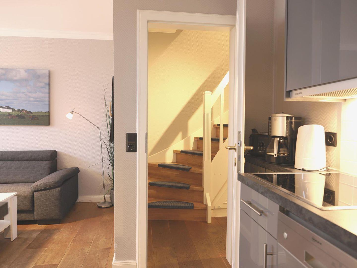 Diese exklusive 3-Zimmer-Ferienwohnung im Herzen von Westerland bietet auf 70 m² Platz für bis zu 5 Personen. Der großzügige Wohn-/Essbereich ist mit einer bequemen Wohnlandschaft, einem Flat Screen TV und einer HiFi-Anlage ausgestattet. Die hochwertige Markenküche umfasst einen Induktionsherd, Backofen, Geschirrspüler und Kühlschrank mit Gefrierfach. Das Badezimmer wurde 2021 komplett saniert und verfügt über eine Regenwasserdusche und exklusive Sanitärobjekte. Eine Holztreppe führt ins Obergeschoss, wo sich zwei geräumige Schlafzimmer befinden. Schlafzimmer 1 ist mit einem Doppelbett (180 x 200 cm) ausgestattet, und Schlafzimmer 2 bietet zwei Einzelbetten (90 x 200 cm) sowie ein weiteres Bett (80 x 200 cm). Beide Schlafzimmer verfügen über einen Flat Screen TV. Von der Süd-West-Loggia genießen Sie einen schönen Blick über Westerland und das Hotel Stadt Hamburg. Die Wohnung liegt in der Nähe von Kurpromenade (300 m), Sylter Welle (250 m) und der Fußgängerzone. Im Haus stehen Ihnen eine Waschmaschine und ein Trockner zur Verfügung (mit Münzzähler). Ein Parkplatz ist nicht verfügbar. Haustiere sind willkommen.