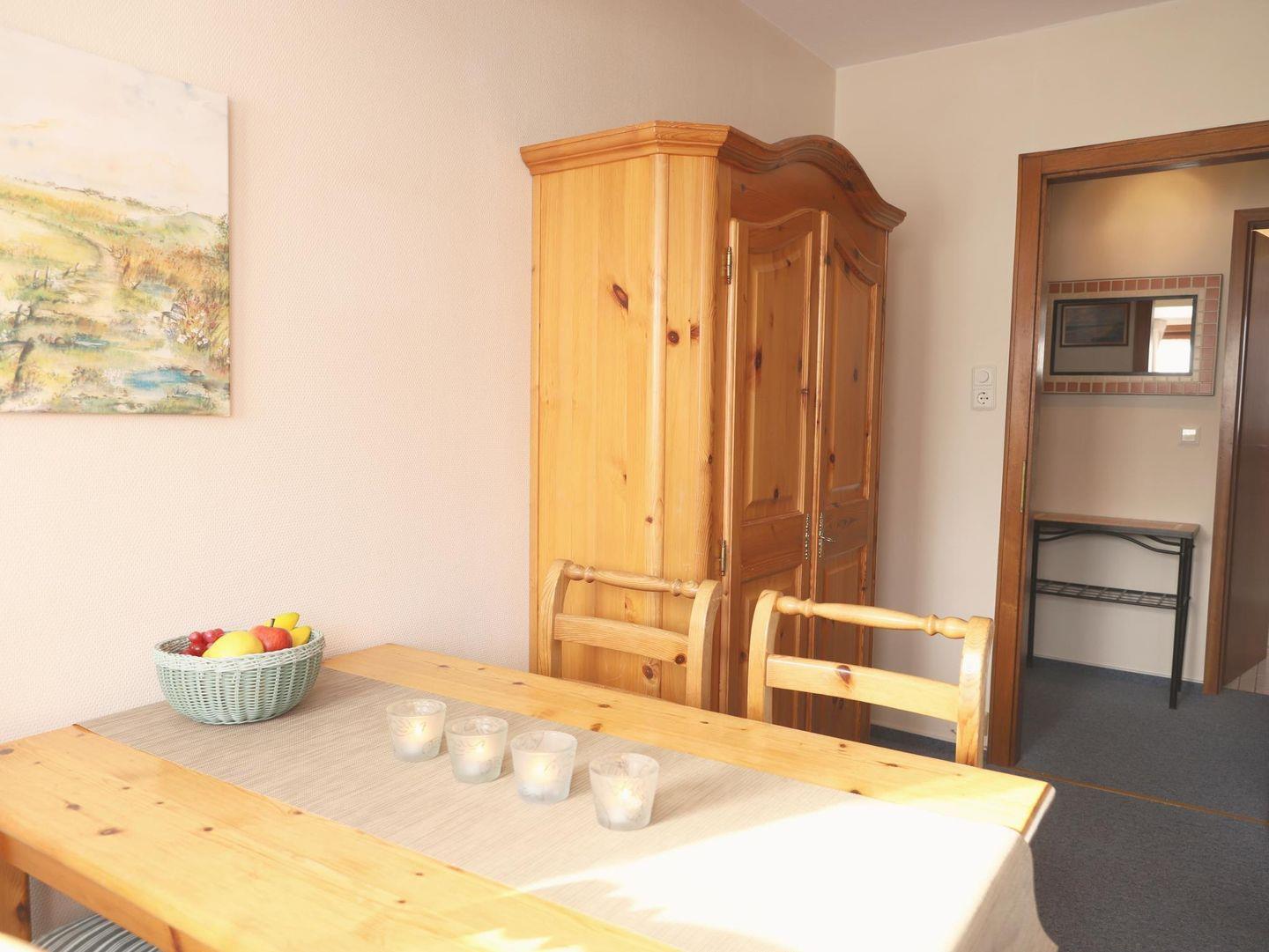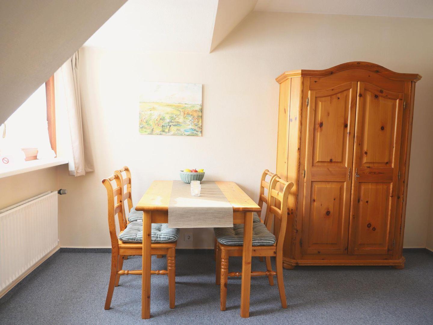 Willkommen in der 2-Zimmer-Ferienwohnung „Amrum“ im Erdgeschoss des Hauses „Am Wäldchen“ in Westerland. Die Wohnung bietet auf 35 m² Platz für bis zu 4 Personen und ist einfach und zweckmäßig eingerichtet – ideal für alle, die eine strandnahe Lage und ein gutes Preis-Leistungs-Verhältnis zu schätzen wissen. Im Wohnbereich erwarten Sie eine Ausziehcouch, ein Essplatz am Fenster, WLAN und Flachbild-TV. Die kompakte Miniküche ist funktional ausgestattet und eignet sich für einfache Mahlzeiten. Im Schlafzimmer befinden sich ein Doppelbett (180 × 200 cm) und ein Einbauschrank, das Duschbad ist direkt vom Schlafzimmer zugänglich. Ein PKW-Stellplatz liegt direkt vor dem Haus, Waschmaschine und Trockner stehen im Anbau zur Mitnutzung bereit. Die ruhige, zentrale Lage ist perfekt: nur 200?m zum Strand und nahe Einkaufsmöglichkeiten, Restaurants und dem Südwäldchen. Hunde sind auf Anfrage willkommen.