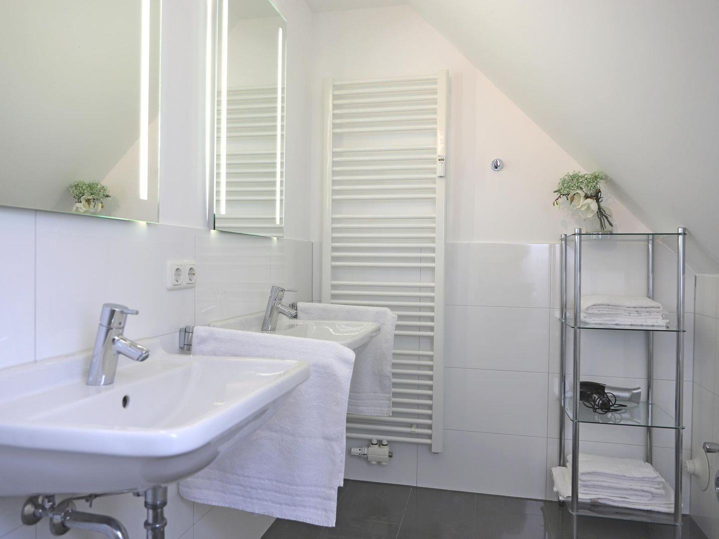 Erleben Sie Komfort und Stil in dieser modernen 2-Zimmer-Wohnung (70 m²) in der neu erbauten Viktoriaresidenz in Westerland. Die Wohnung erstreckt sich über 2 Ebenen im 2. Obergeschoss und bietet Platz für bis zu 4 Personen. Der lichtdurchflutete Wohnbereich mit Eichenparkett verfügt über eine Schlafcouch (150 x 190 cm), eine gemütliche Sitz- und Essecke sowie Kabel-TV. Der 12 m² große Südbalkon lädt mit Terrassenmöbeln und einem Strandkorb zum Entspannen ein. Die Einbauküche ist bestens ausgestattet mit Glaskeramik-Kochfeld, Backofen, Mikrowelle, Geschirrspüler und Kühlschrank. Im Schlafzimmer erwartet Sie ein komfortables Doppelbett (160 x 200 cm) sowie ein Flatscreen-TV. Das moderne Duschbad bietet eine bodengleiche Dusche, einen Handtuchheizkörper und hochwertige Ausstattung. WLAN ist verfügbar. Ein Tiefgaragenstellplatz (Durchfahrtshöhe 2,0 m) und ein Aufzug sorgen für zusätzlichen Komfort. Eine gemeinschaftliche Münzwaschmaschine und Trockner stehen im Keller zur Verfügung. Zum Strand und ins Zentrum von Westerland sind es nur wenige Gehminuten. Rauchen ist nur auf dem Balkon gestattet, Haustiere sind gestattet.