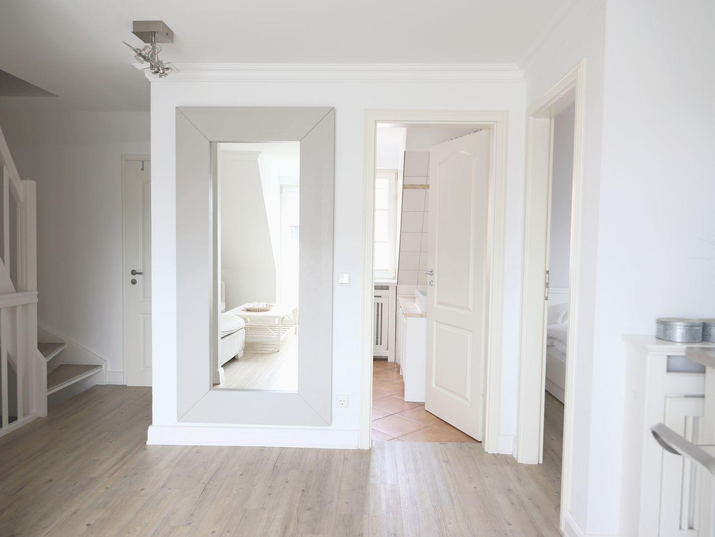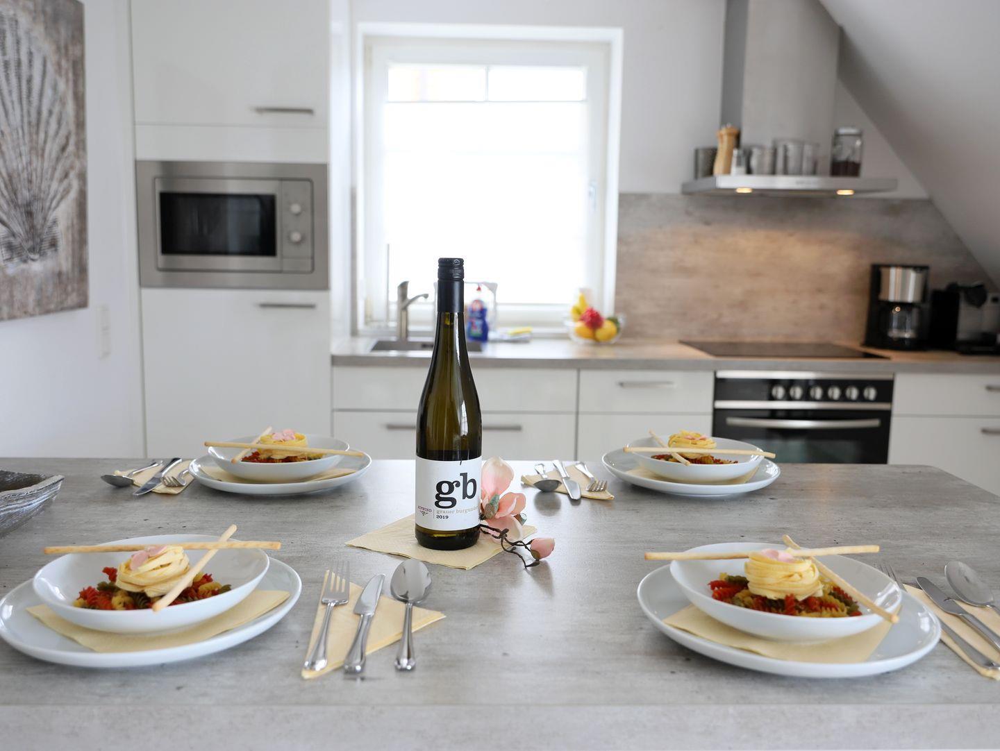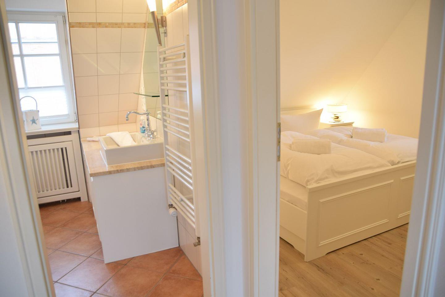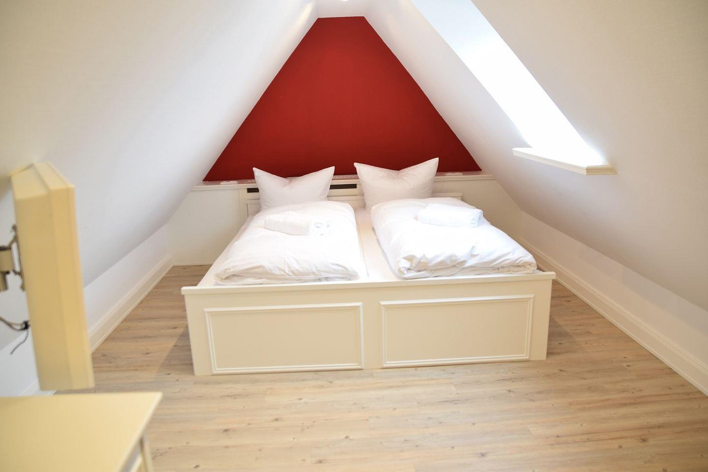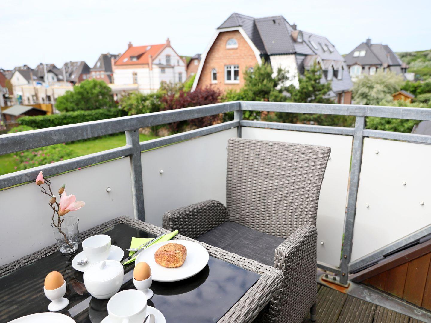 Diese helle und moderne Wohnung in Westerland bietet auf ca. 74 m² Platz für 4 Personen. Die Wohnung befindet sich im 1. Obergeschoss/Dachgeschoss und ist allergikerfreundlich. Sie verfügt über ein gemütliches Wohnzimmer mit Eckcouch, Flatscreen-TV sowie einen Essplatz. Die offene Küche ist voll ausgestattet, darunter ein Backofen, Cerankochfeld, Kühlschrank, Mikrowelle und Geschirrspüler. Zwei Schlafzimmer bieten je ein Doppelbett (180 x 200 cm und 160 x 200 cm) sowie Flatscreen-TVs. Das moderne, helle Duschbad ist mit Fenster und hochwertigen Armaturen ausgestattet. Ein schöner Süd-Balkon mit Gartentisch und Stühlen lädt zum Entspannen ein. Von hier aus können Sie das Meeresrauschen genießen. Ein kostenfreier Stellplatz befindet sich direkt vor dem Haus. Fahrräder können im Fahrradständer abgestellt werden (kein garantierter Stellplatz). Rauchen ist nur auf dem Balkon gestattet.