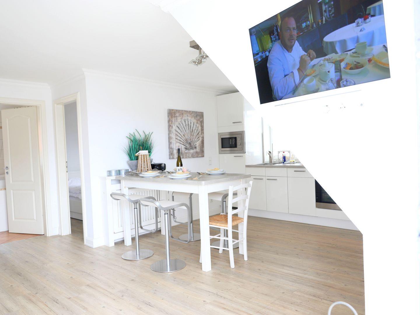 Helle 2-Schlafzimmer-Wohnung in Westerland für 4 Personen mit Süd-Balkon, Kabel-TV und kostenfreiem Stellplatz. Allergikerfreundlich, modern ausgestattete Küche und Badezimmer. Haustiere nicht gestattet.