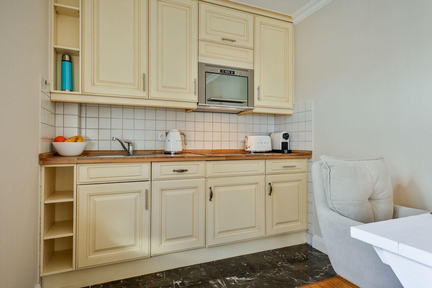 Diese hochwertige 2-Zimmer-Wohnung im 1. Obergeschoss bietet auf ca. 43 m² Platz für 2 Personen. Der kombinierte Wohn-/Essbereich ist mit einem Flatscreen-TV, einer Stereoanlage und einer gemütlichen Essecke ausgestattet. Die offene Küchenzeile ist mit einem 4-Platten-Cerankochfeld, Mikrowelle, Geschirrspüler, Kühlschrank und Kaffeemaschine bestens für Selbstversorger geeignet. Das Schlafzimmer verfügt über ein Doppelbett (160 x 200 cm) und ebenfalls einen Flatscreen-TV. Das Badezimmer ist mit einer Dusche und WC ausgestattet. Zwei kleine Balkone (Süd- und Westlage) bieten Platz für entspannte Stunden im Freien. Im Außenbereich steht ein geräumiger Gemeinschaftsgarten zur Verfügung. Für Ihre Fahrräder gibt es einen Fahrradständer am Haus. Ein kostenfreier Stellplatz für Ihr Auto ist direkt am Gebäude vorhanden. Im Untergeschoss des Hauses können Sie die Sauna (mit Münzautomat), Waschmaschine und Trockner (Münzbetrieb) nutzen. Haustiere sind willkommen.