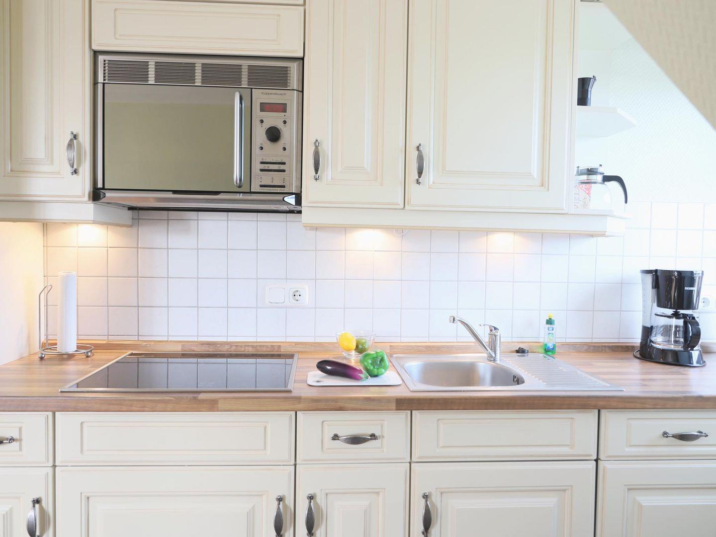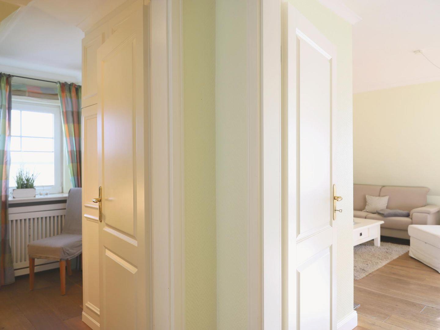 Diese hochwertige 3-Zimmer-Wohnung im 2. Obergeschoss bietet auf ca. 60 m² Platz für bis zu 4 Personen. Der Wohn-/Essbereich ist mit einer Schlafcouch (150 x 160 cm), Flatscreen-TV, Stereoanlage und WLAN ausgestattet. Die offene Küchenzeile enthält ein 4-Platten-Cerankochfeld, Mikrowelle, Geschirrspüler, Kühlschrank und Kaffeemaschine.