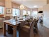 Wohn-/Essbereich: Großzügiger Wohnbereich mit gemütlichen Polstermöbeln, TV und Elektrokamin. Ein großer Esstisch für 6 Personen lädt zum Verweilen ein.