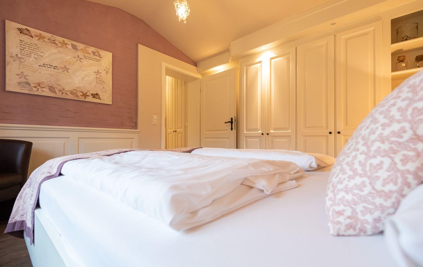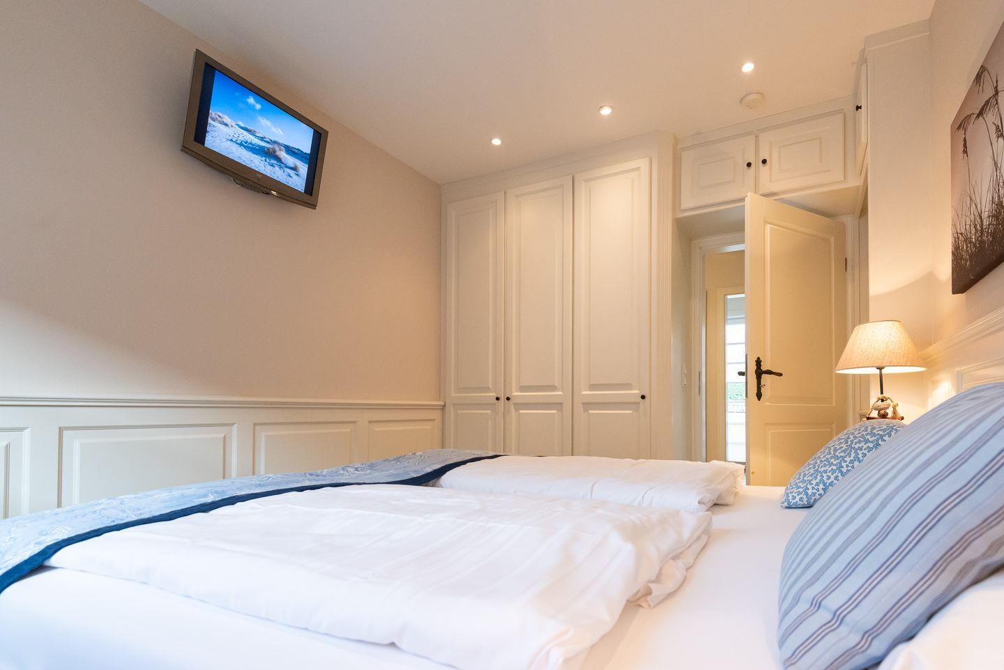 Schlafzimmer 2: Gemütliches Doppelbett, Einbauschrank und TV