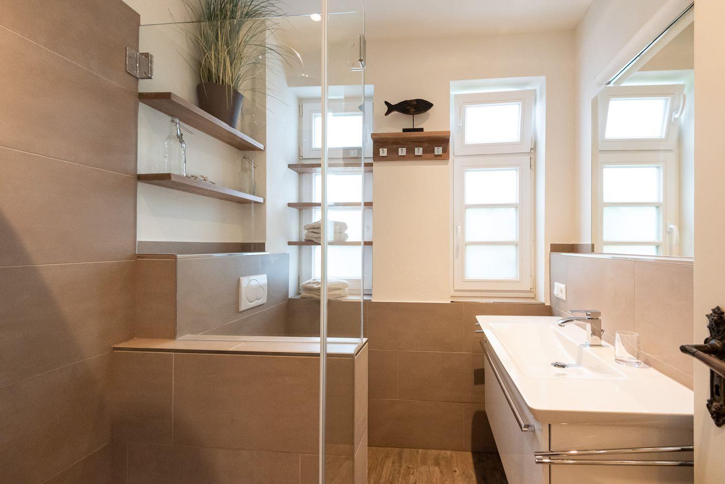 Badezimmer 1: Modernes Duschbad mit Fenster