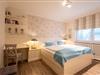 Schlafzimmer 1: Gemütliches Doppeltbett, Einbauschränke und TV. Von diesem Schlafzimmer haben Sie direkten Anschluss an ein eigenes Badezimmer und Zutritt auf die möblierte West-Terrasse.