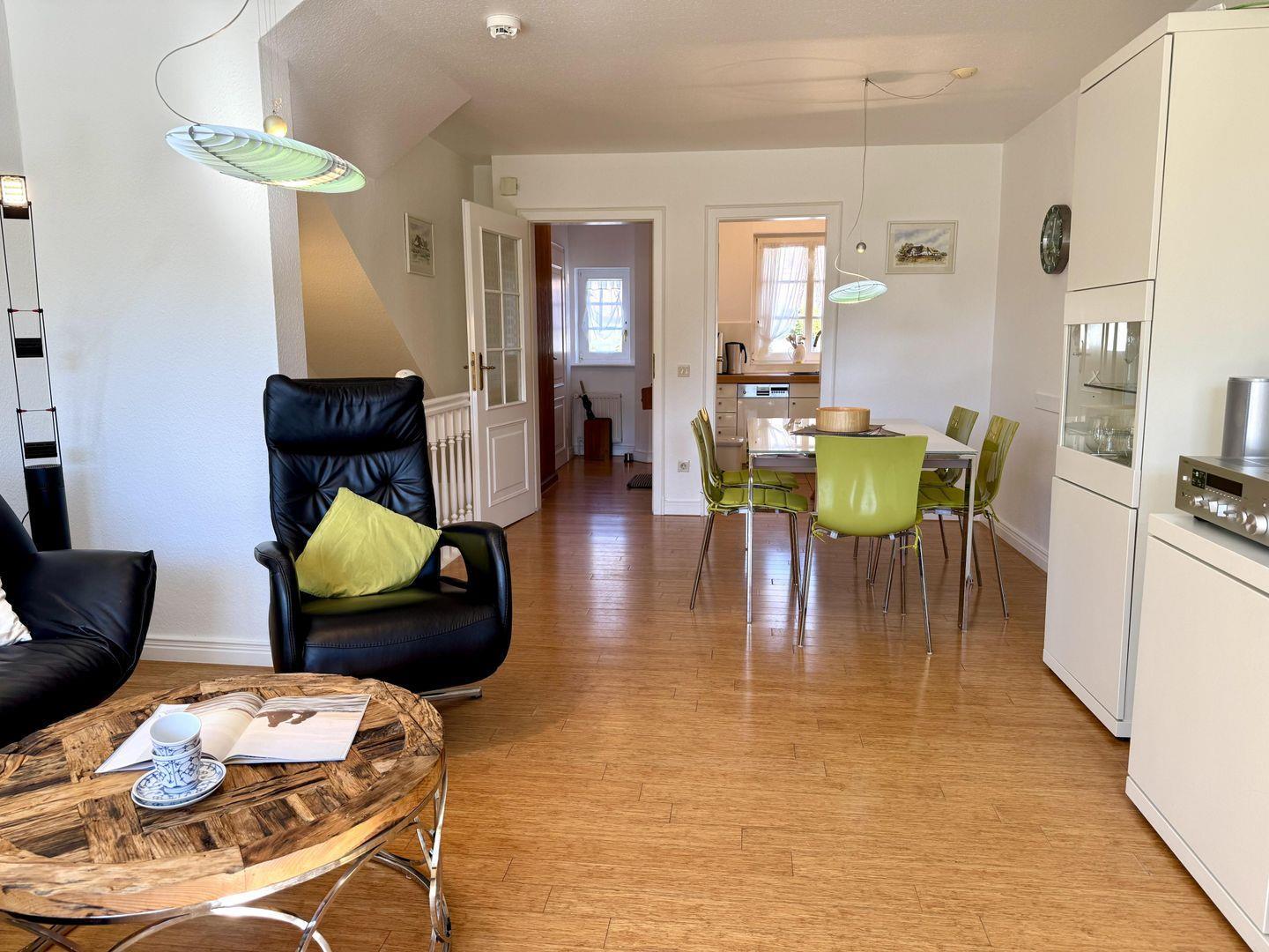 Gemütliche ca. 65m² große Ferienwohnung für bis zu 4 Personen mit schönem Garten in ruhiger, zentraler Lage. Inklusive WLAN, zugehörigem PKW- Stellplatz sowie Strandkorb (in der Saison).