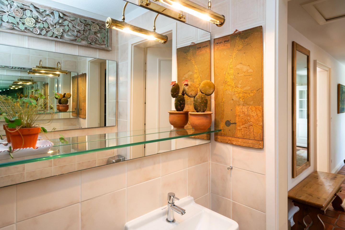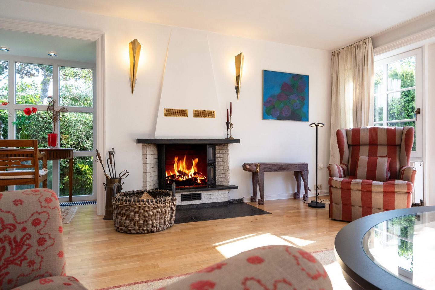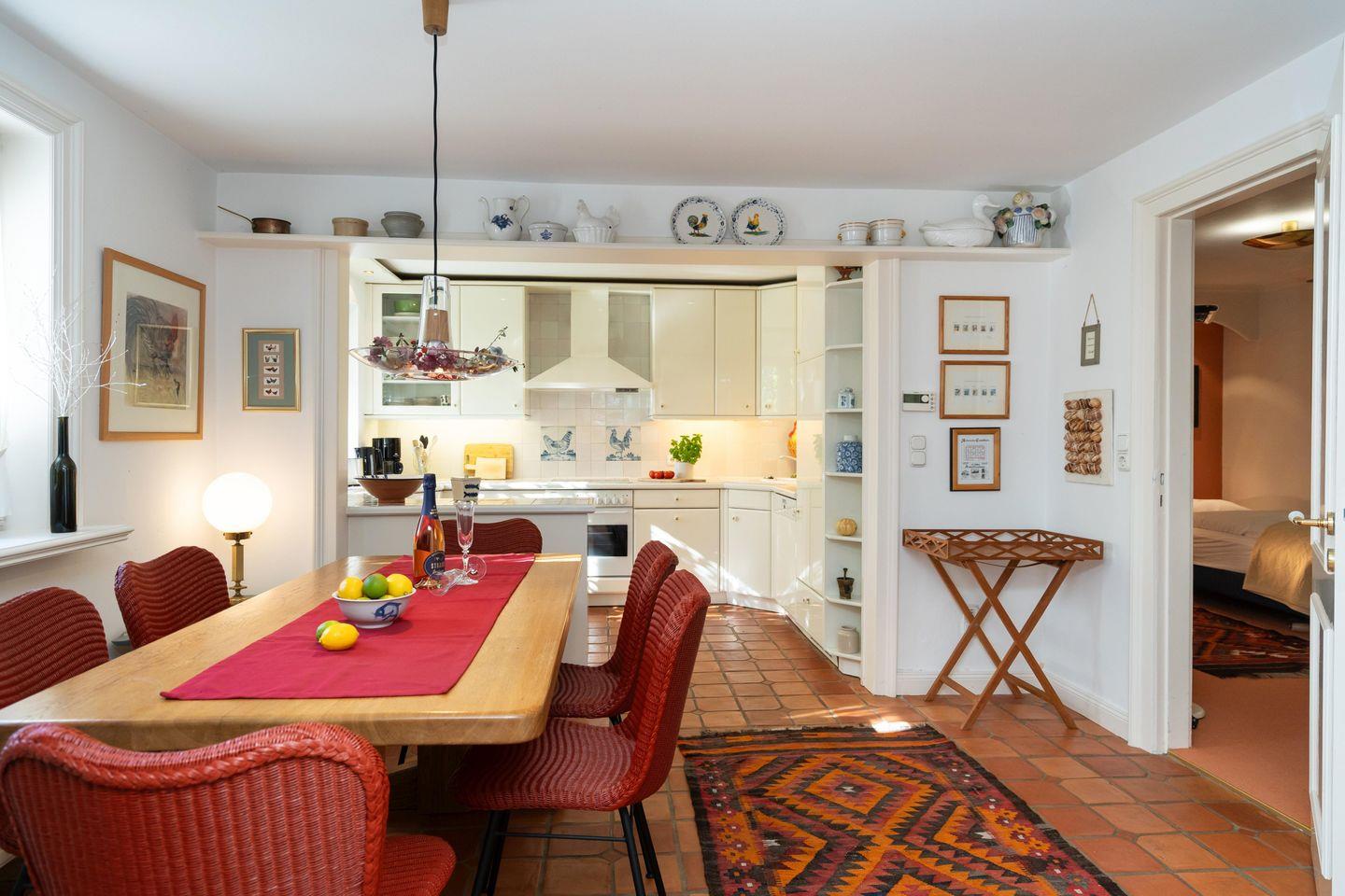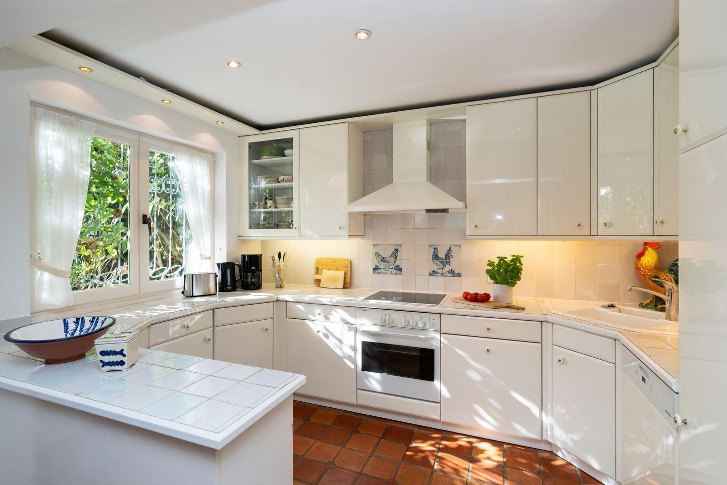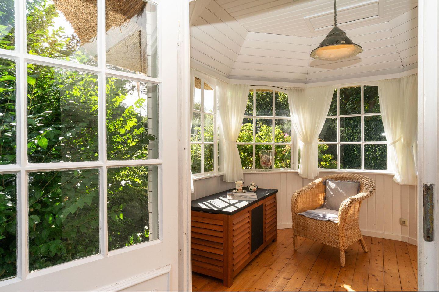 Das freistehende, ebenerdige Ferienhaus "Hideaway" bietet auf ca. 100 m² ein stilvolles und gemütliches Ambiente für bis zu 4 Personen. Ruhig gelegen im idyllischen Alt-Westerland, ist es mit seinem großzügigen, eingezäunten Garten der perfekte Ort für erholsame Tage auf Sylt. Das helle Wohnzimmer lädt mit einem bequemen Sofa, Sesseln, einem kleinen Schreibtisch sowie TV zu Entspannen ein. Von hier aus gelangen Sie direkt auf die möblierte Südterrasse und in den liebevoll angelegten Garten mit reetgedecktem Pavillon – ideal, um die Ruhe und das friesische Flair in vollen Zügen zu genießen. Im angrenzenden Esszimmer finden bis zu 6 Personen an einem rustikalen Holztisch Platz – perfekt für gemeinsame Mahlzeiten in gemütlicher Runde. Die offene Landhausküche ist komplett ausgestattet, inkl. Geschirrspüler und modernen Annehmlichkeiten, um Sie auch kulinarisch bestens zu versorgen. Das Hauptschlafzimmer ist mit einem elektrisch verstellbaren Doppelbett (2x 90x200 cm) und einem geräumigen Einbauschrank ausgestattet. Ein eigenes Tageslichtbad en suite mit Dusche und WC rundet den Komfort ab. Das zweite Schlafzimmer verfügt über zwei Einzelbetten (je 90x200 cm) und einen Kleiderschrank. Auch hier steht ein eigenes Tageslichtbad mit Badewanne, separater Dusche und WC zur Verfügung. Ein einladender Flur mit Garderobe im Eingangsbereich sowie ein zusätzliches Gäste-WC sorgen für noch mehr Bequemlichkeit während Ihres Aufenthaltes. WLAN (ohne Gewähr) sowie zwei PKW-Stellplätze sind vorhanden. Ein Hund ist herzlich willkommen.