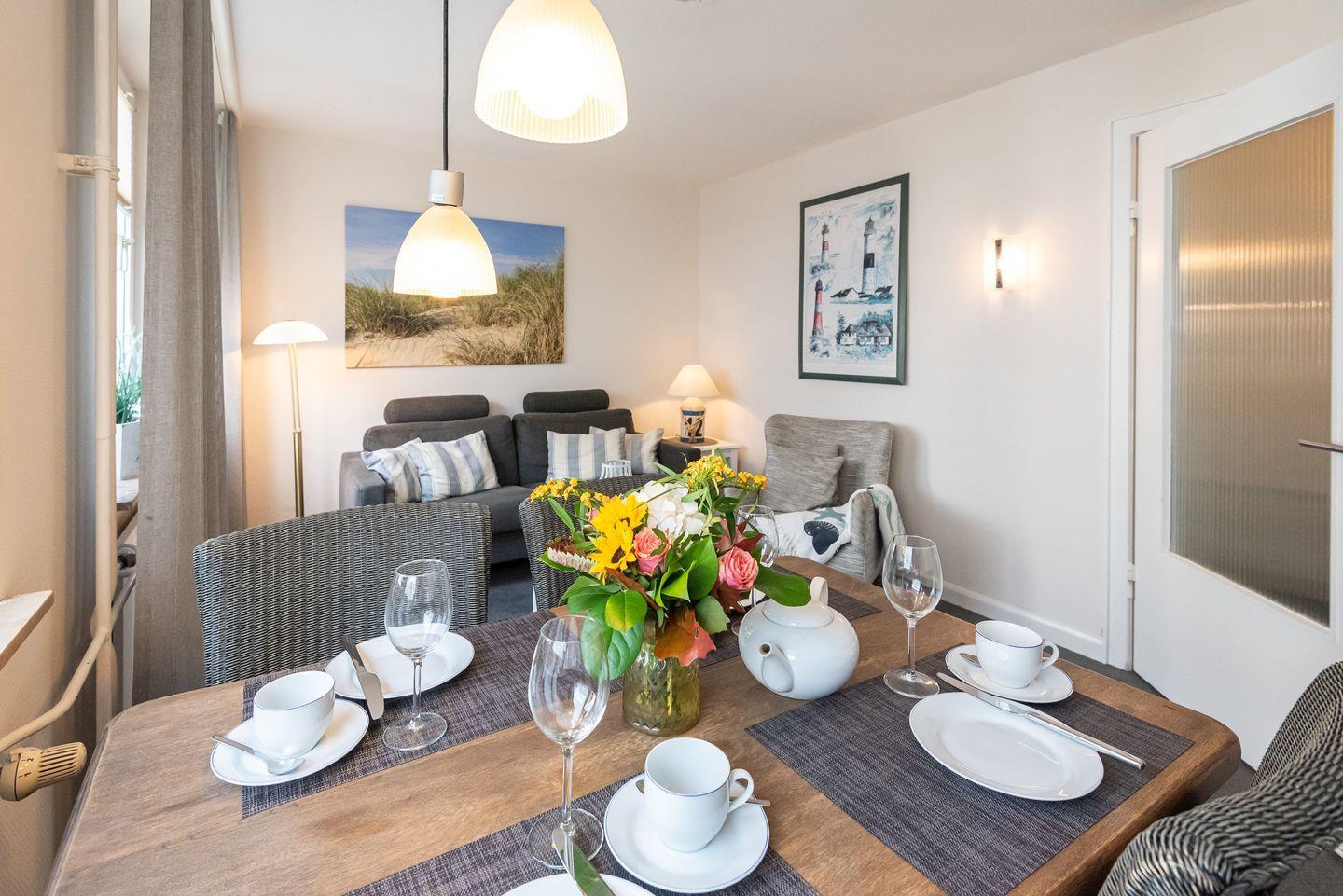 Charmantes 3-Zimmer-App. – ideal für bis zu 3 Personen. Freuen Sie sich auf gemütliches Wohnen mit stilvollem Flair und einem kleinen Meerblick durch die Häuser. Die liebevoll eingerichtete Wohnung bietet ein helles Wohnzimmer, eine gut ausgestattete Küche, zwei Schlafzimmer und ein modernes Bad. Perfekt für entspannte Urlaubstage in maritimer Atmosphäre. Ein Aufzug ist vorhanden.