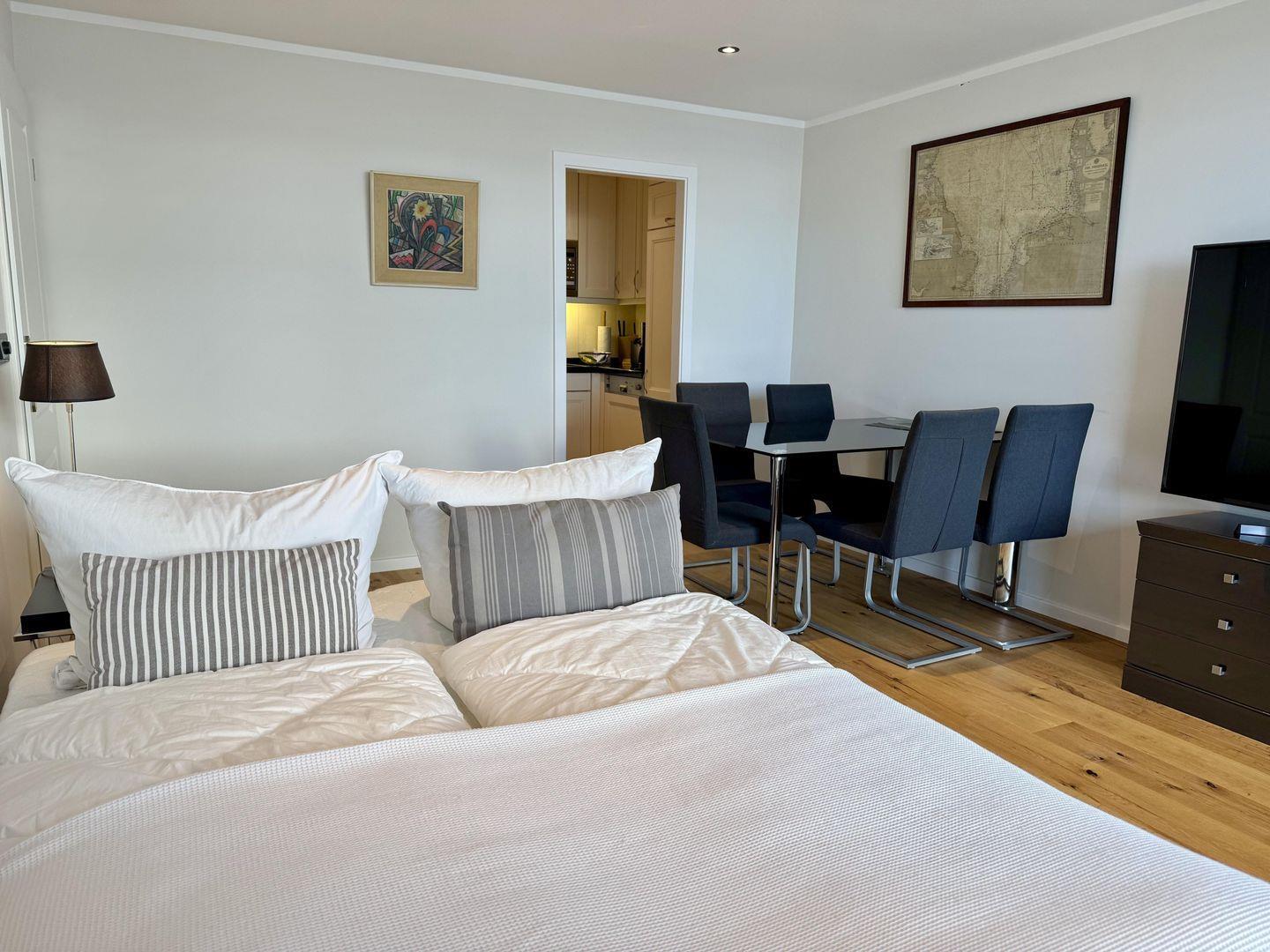 Das moderne 2-Zimmer App. "Nordsee" für 2-4 Personen punktet durch seine absolut zentrale Lage sowie der unmittelbaren Nähe zum Westerländer Strand. Auf dem schönen Balkon mit Blick auf die Friedrichstraße bis hin zum Meer lässt sich ein gemütliches Frühstück genießen. Das angrenzende Wohnzimmer inkl. Essecke sowie ausziehbarer Schlafcouch bietet eine Schlafmöglichkeit für zwei Personen. Die kleine, offene Küche ist samt Geschirrspüler, Cerankochfeld und Backofen vollständig ausgestattet. Das Schlafzimmer verfügt über ein Doppelbett (180x200 cm) sowie viel Stauraum für einen ausgiebigen Sylturlaub. Das moderne Duschbad ist mit einem Haartrockner ausgestattet. Kostenloses WLAN sowie ein ebenerdiger Fahrstuhl sind vorhanden. Eine Waschmaschine sowie ein Waschtrockner stehen gegen Gebühr zur gemeinschaftlichen Nutzung im Kellergeschoss zur Verfügung. Haustiere sind willkommen.
