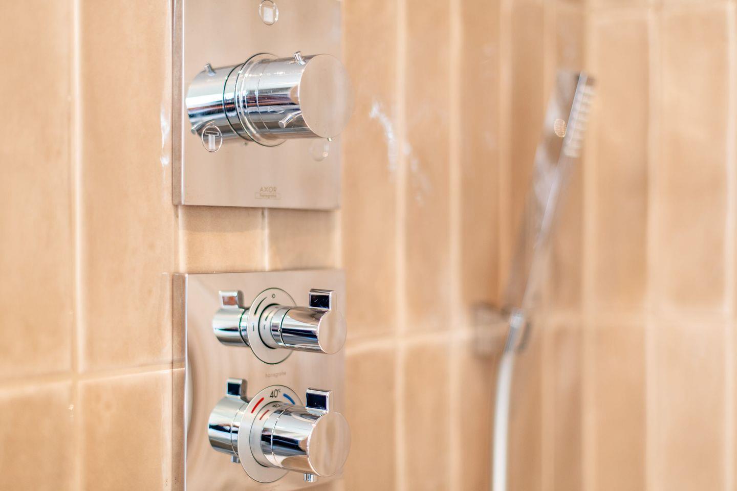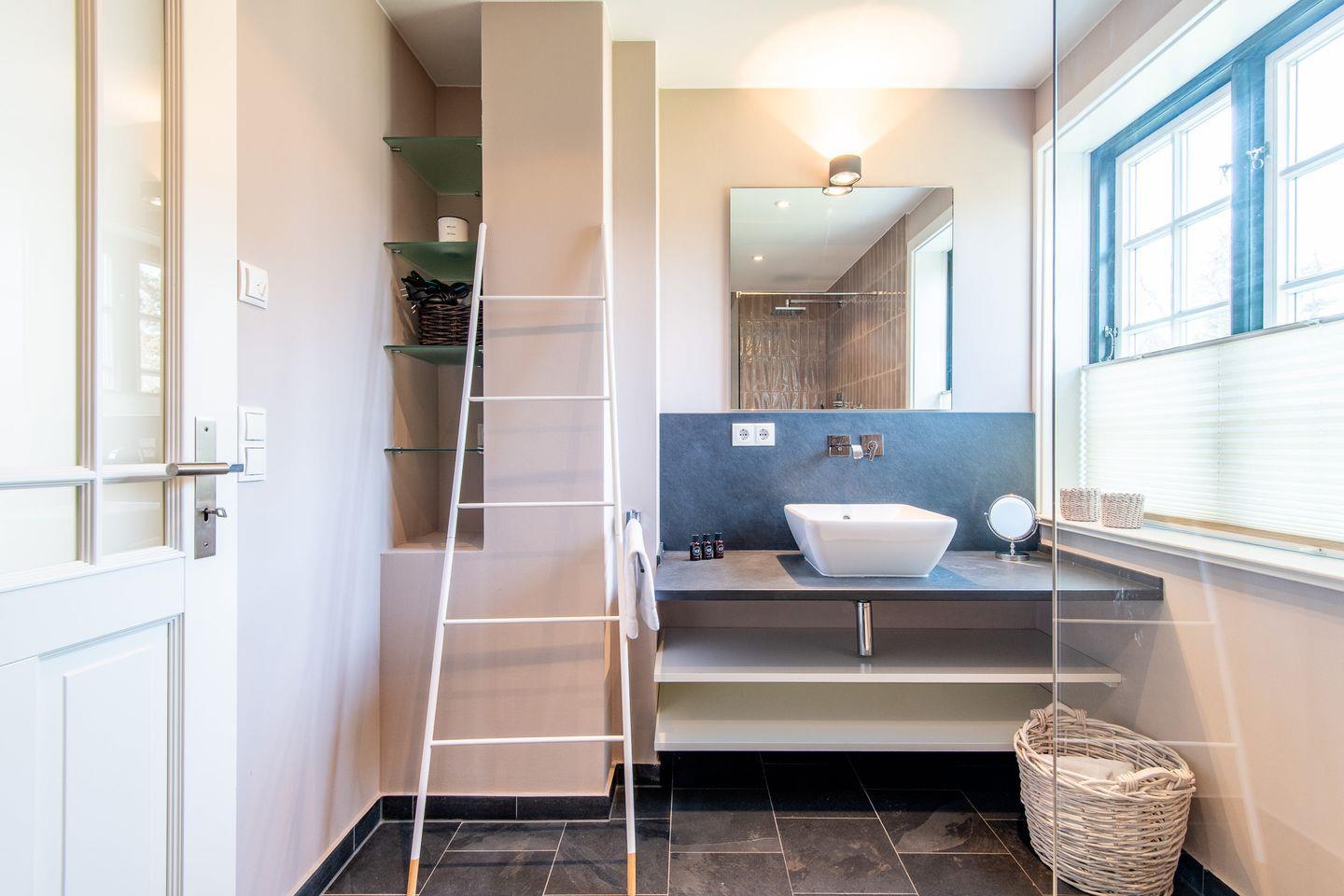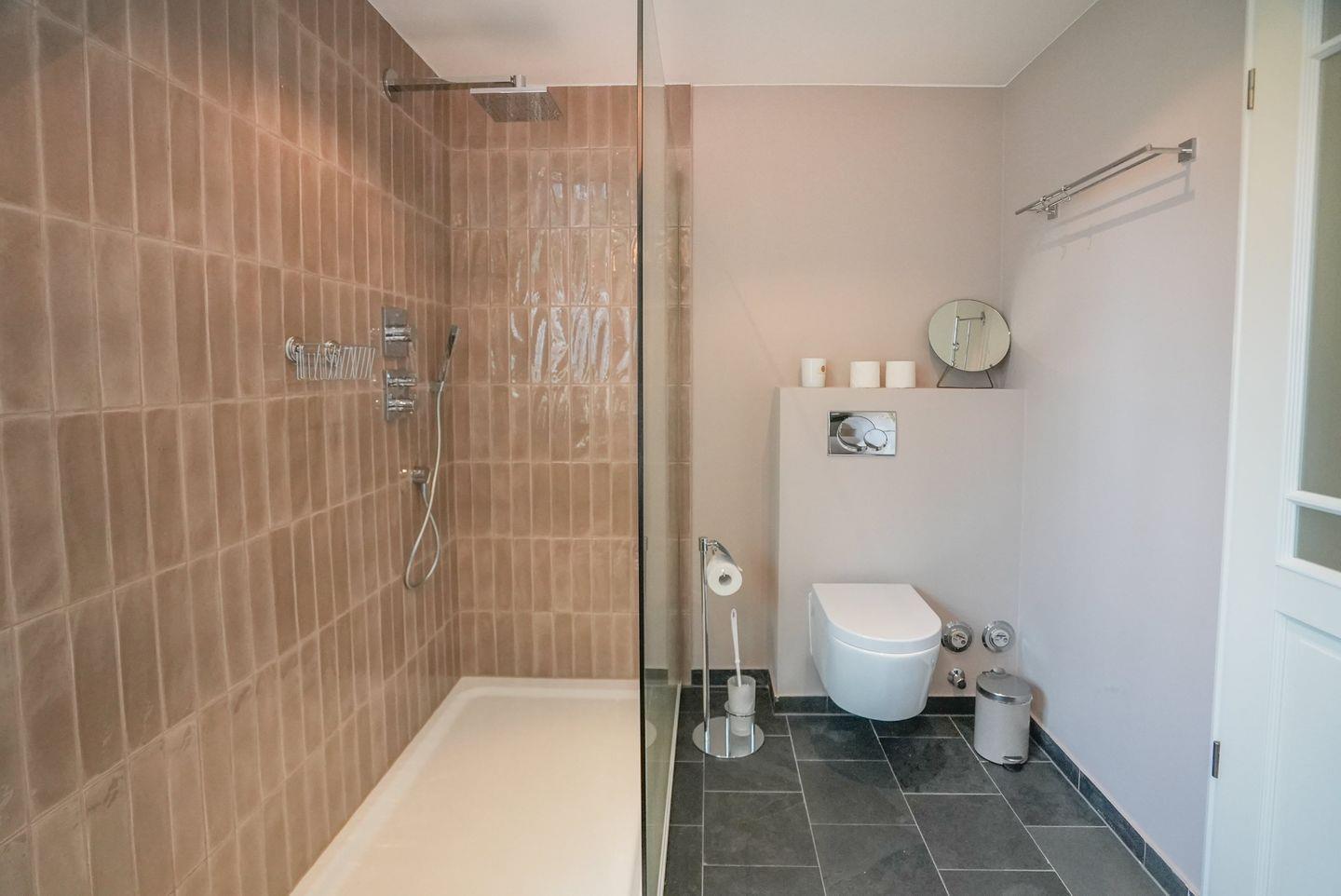 Das moderne Badezimmer ist mit einer ebenerdigen Dusche, WC, Tageslicht, Handtuchwärmer und Föhn ausgestattet und sorgt für Wellnessmomente während Ihres Aufenthalts.
