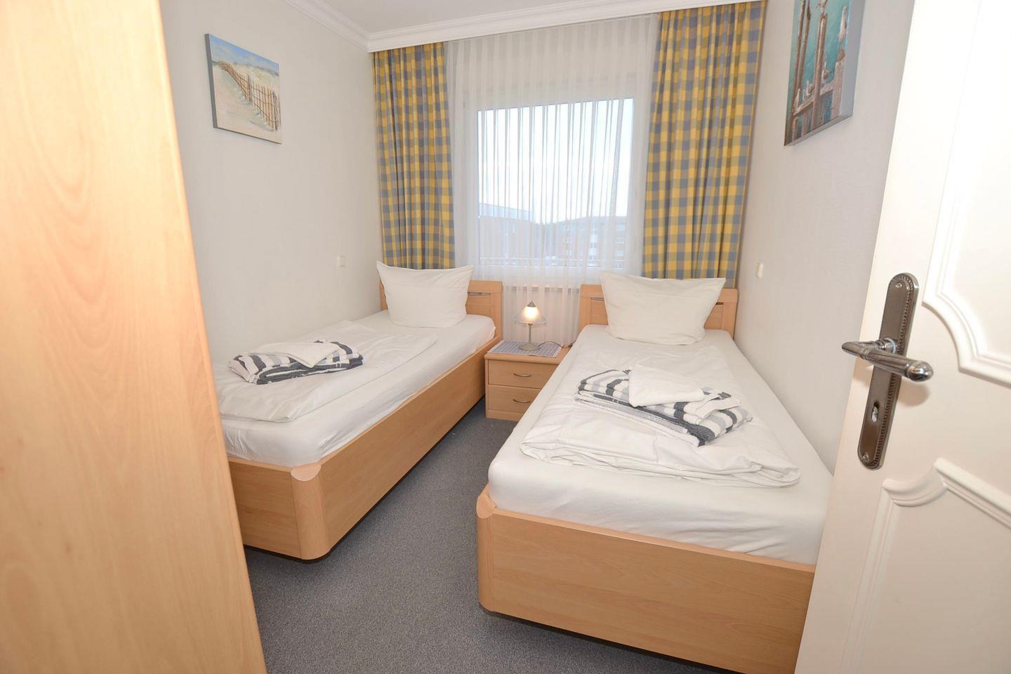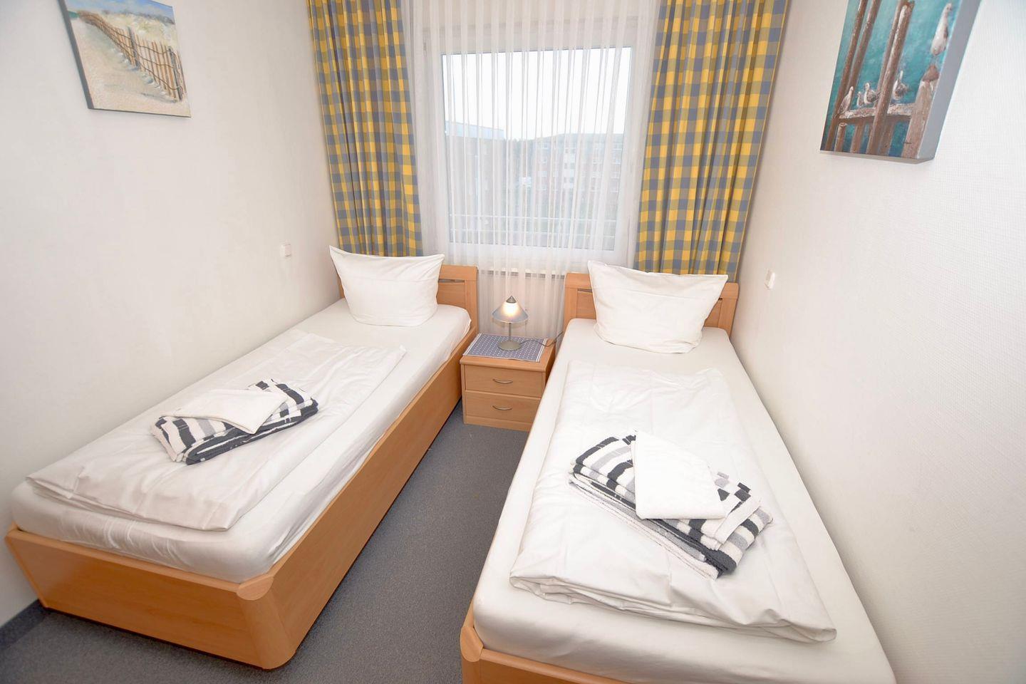 Einzelbetten (90x200 cm), die für eine erholsame Nachtruhe sorgen. Der Raum ist