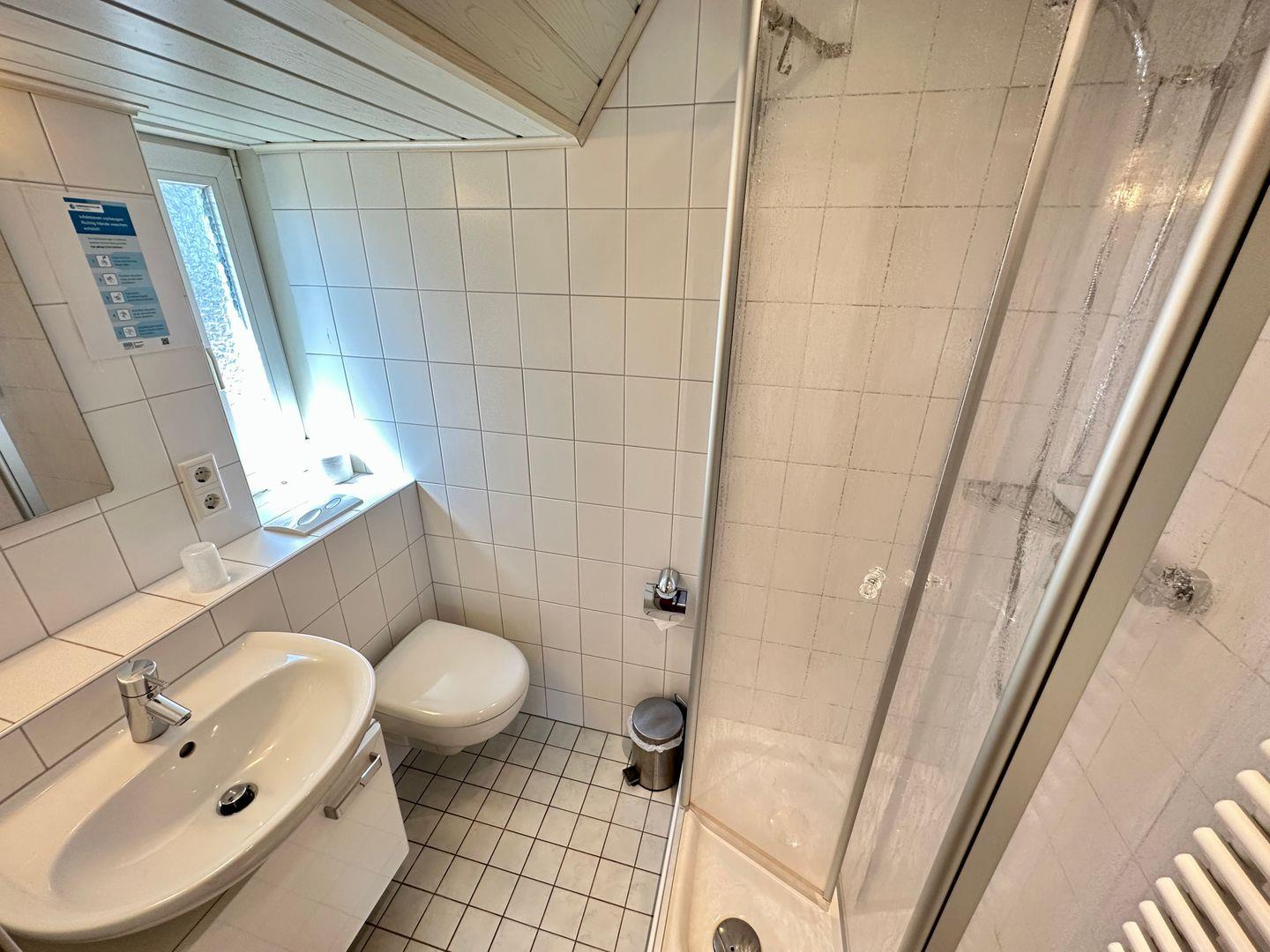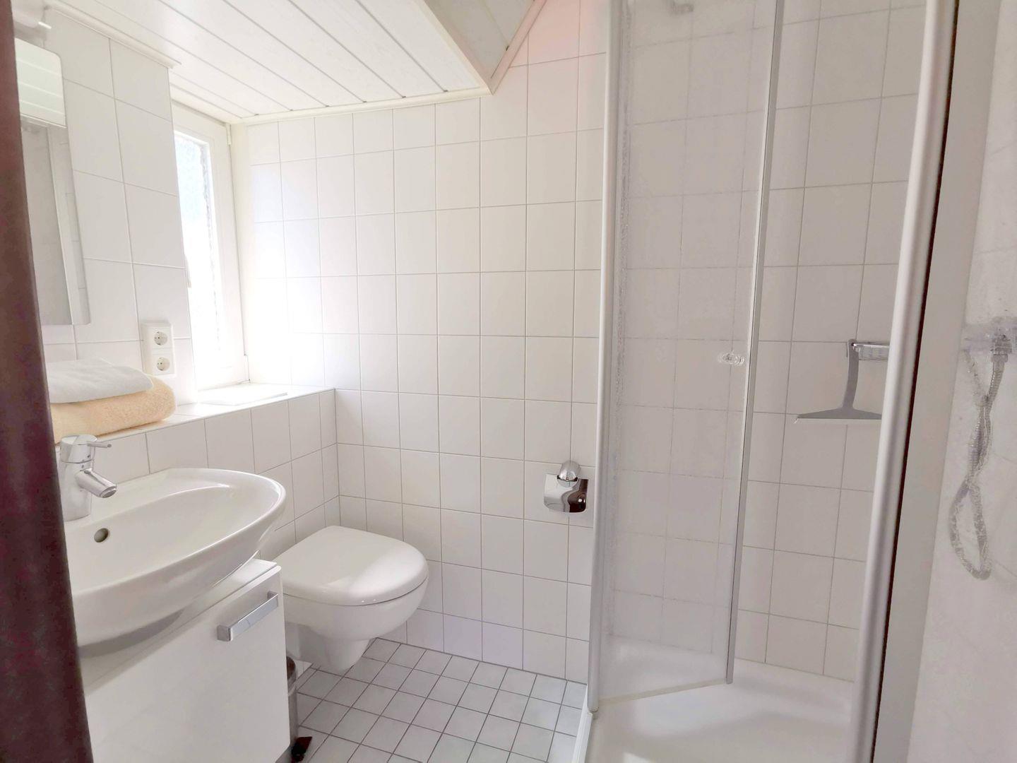 perfekt für kleine Mahlzeiten und Snacks. Ein separates, helles Duschbad mit