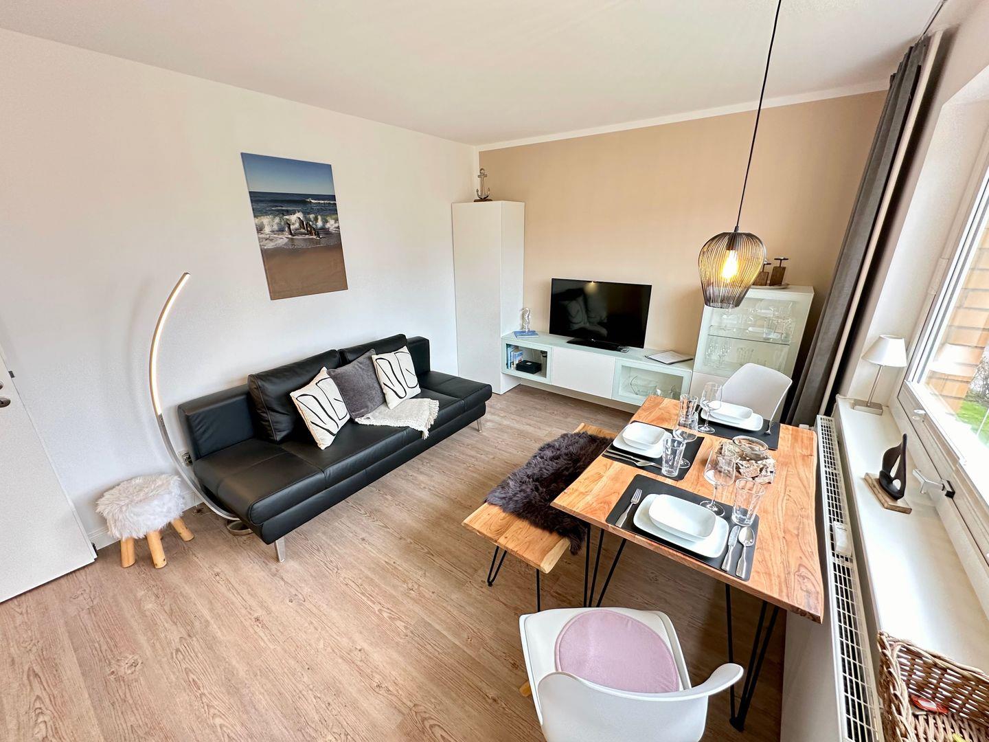 Die Unterkunft 16-A224 in Westerland bietet auf 35 m² ein Schlafzimmer, ein modernes Wohnzimmer mit Vinylboden, eine voll ausgestattete Küche sowie einen Balkon. Sie befindet sich im Hochparterre eines Hauses aus dem Jahr 1969, das 2024 renoviert wurde. Ein kostenloser Privatparkplatz, Aufzug und Rauchmelder sind vorhanden. Kinder und Babys sind willkommen.