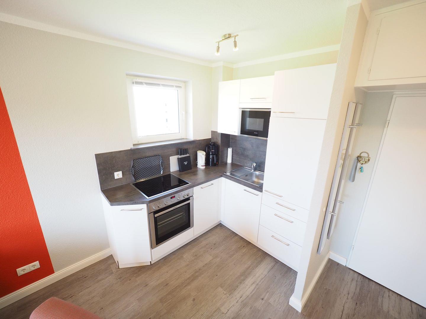 ausgestattet mit einem E-Herd inklusive Cerankochfeld, einer Mikrowelle, einem