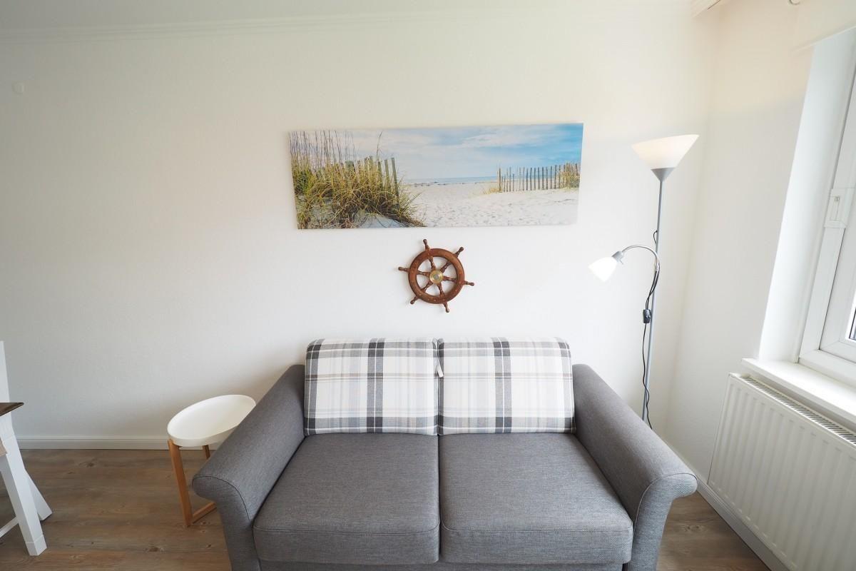 genießen. Im hellen Wohnzimmer erwartet Sie eine gemütliche Schlafcouch (140 x