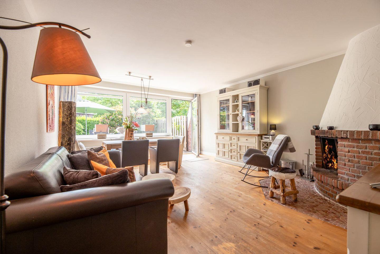 Kamin, großem Fernseher mit Spielekonsole, Essbereich und Zugang zur Südterasse