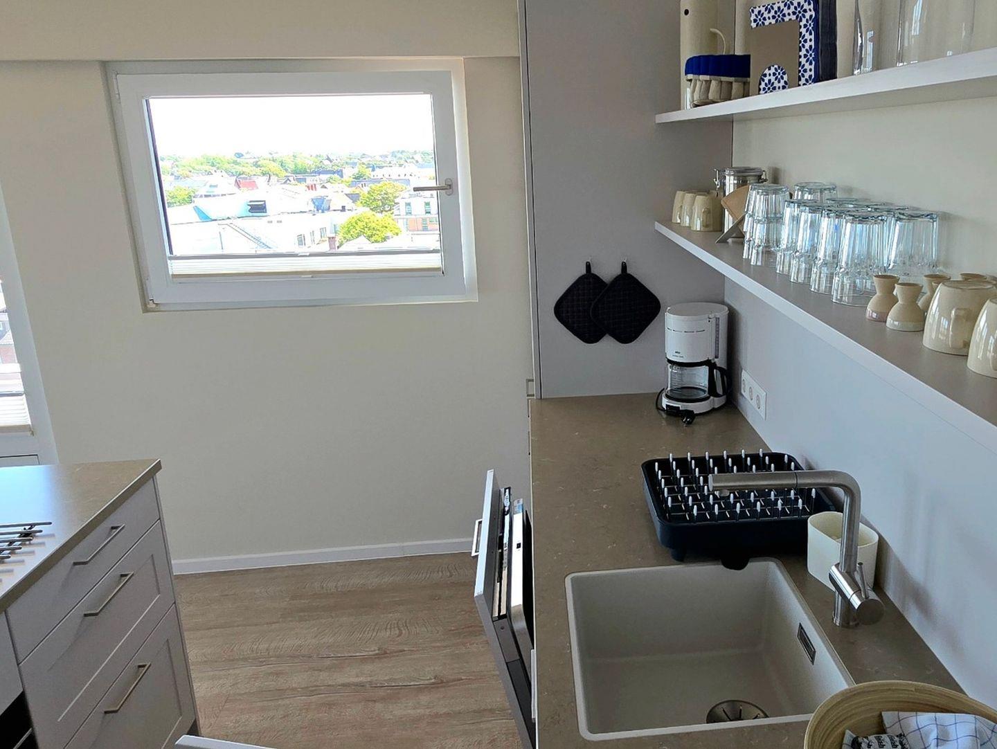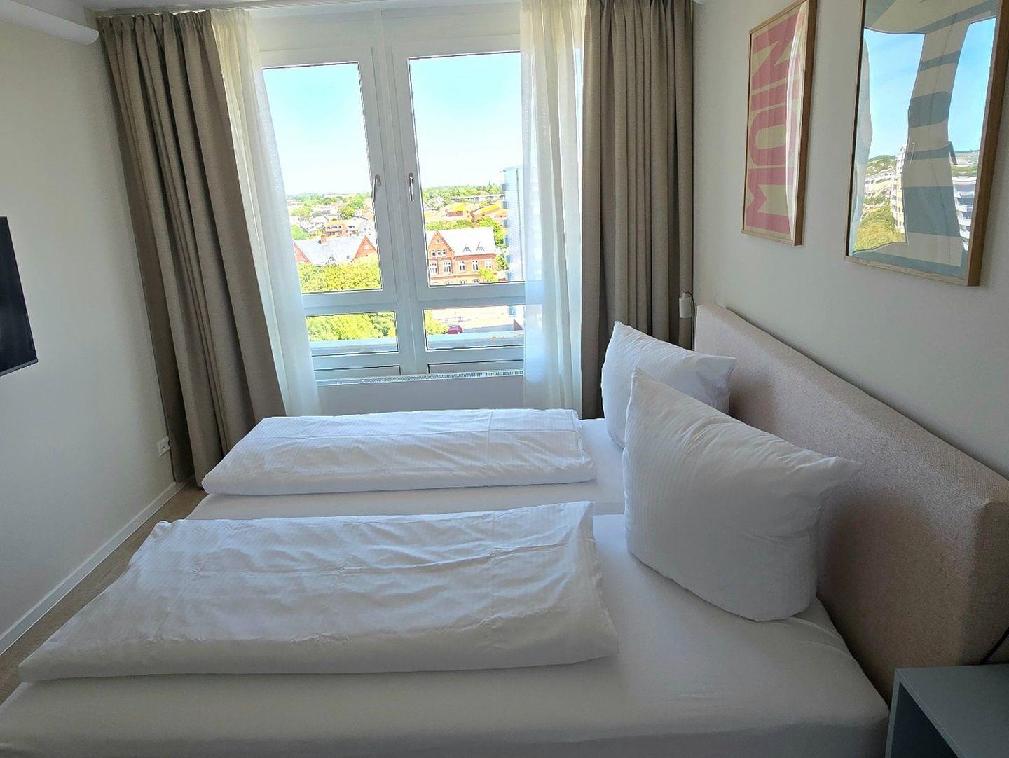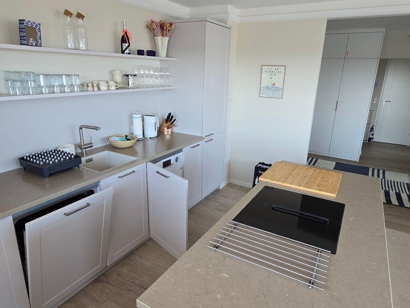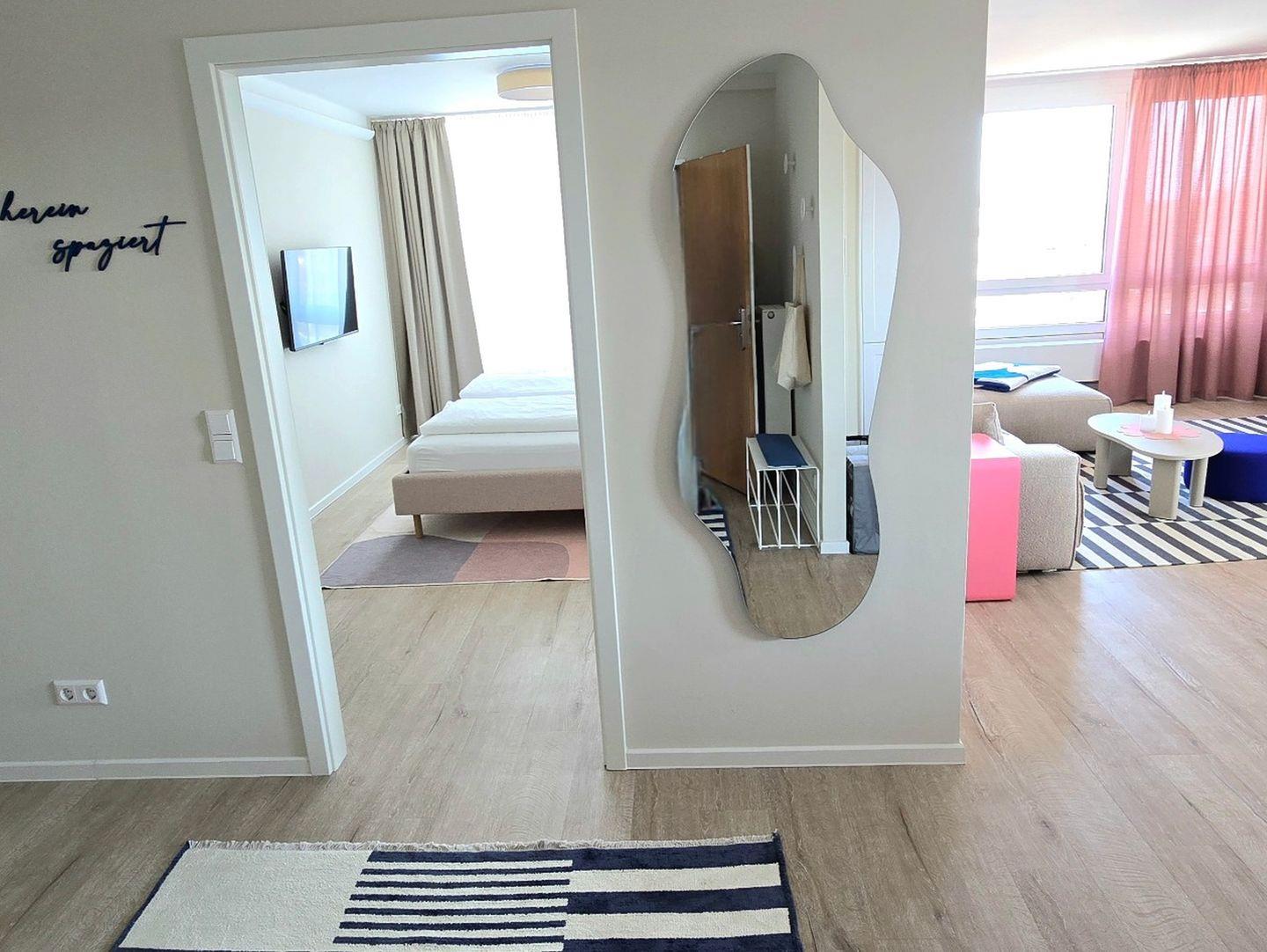 Willkommen im Apartment Dünenlicht – Ihre stilvolle Auszeit im Herzen von Westerland. Die frisch renovierte 3-Zimmer-Wohnung (94?m²) im 5. Stock mit Aufzug bietet bis zu vier Gästen viel Platz, Komfort, Ruhe und eine herrliche Aussicht über Sylt. Genießen Sie entspannte Stunden auf dem sonnigen, überdachten Südbalkon oder erkunden Sie Strand, Stadtzentrum, Cafés und Restaurants – alles in wenigen Minuten bequem zu Fuß erreichbar. Die Nichtraucherwohnung verfügt über zwei separate Schlafzimmer, ein modernes Bad mit Dusche und Badewanne sowie ein zusätzliches Gäste-WC. Die offene Küche ist sehr hochwertig ausgestattet (Induktionsherd, Backofen, Mikrowelle, Gefrierschrank, Toaster, Spülmaschine) und das Wohnzimmer lädt mit großem TV, Esstisch und gemütlichem Sofa zum Verweilen ein. Weitere Extras: schnelles WLAN, Magenta TV, Waschtrockner, Boxspringbett, Tiefgaragenstellplatz mit Platz für Fahrräder. Ein ideales Apartment auf Sylt für Paare oder Freunde, zentral, komfortabel, barrierearm.