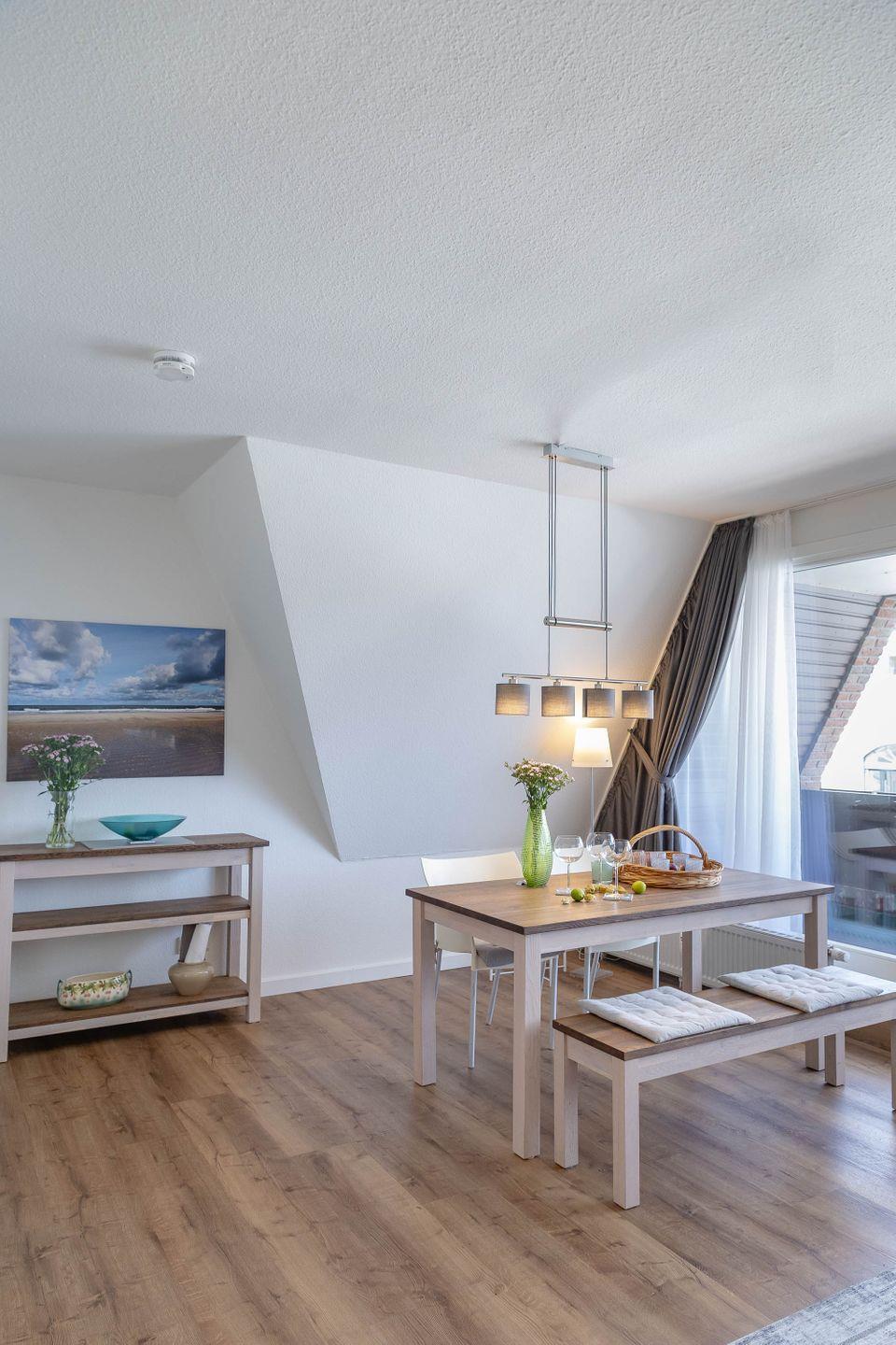 Neu ab sofort - Die Ferienwohnung SEASIDE 32 begrüßt Sie in bester Lage in Westerland, in der Friedrichstraße 35 und bietet auf 60 m² modernen Komfort für bis zu vier Personen. Die Unterkunft befindet sich im dritten Stock eines gepflegten Hauses mit Aufzug und eignet sich sowohl für Familien als auch für Paare, die Wert auf eine stilvolle und zugleich praktische Ausstattung legen. Durch die zentrale Lage an der Friedrichstraße ist die Wohnung ideal gelegen, um das Angebot von Westerland unkompliziert zu genießen.
