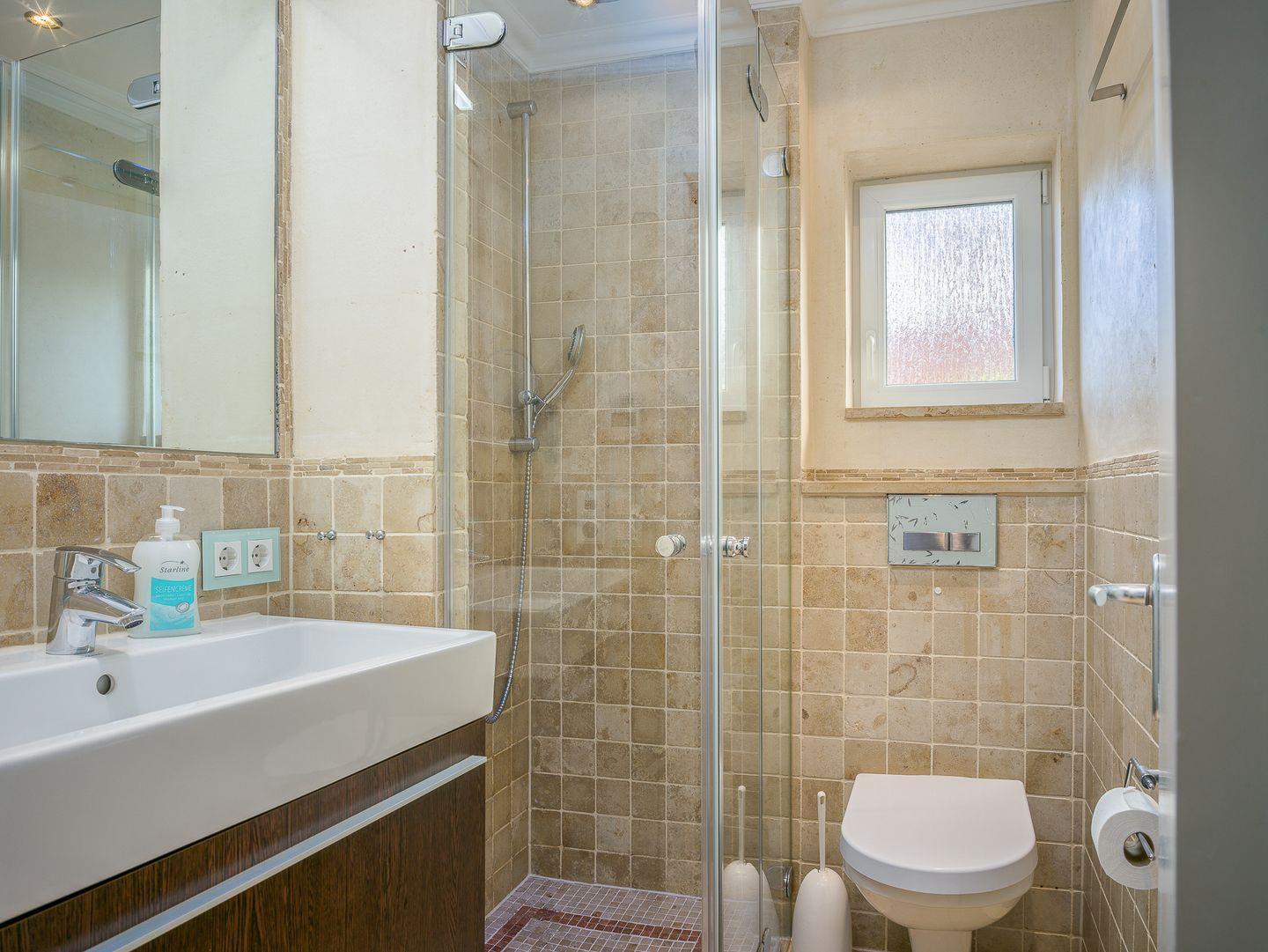 Von einem kleinen Flur aus geht es zu den beiden Schlafzimmer, wobei eins mit Doppelbett und das andere mit zwei Einzelbetten bestückt ist. Ein ganz in Beige gehaltenes Duschbad macht den Bungalow perfekt.