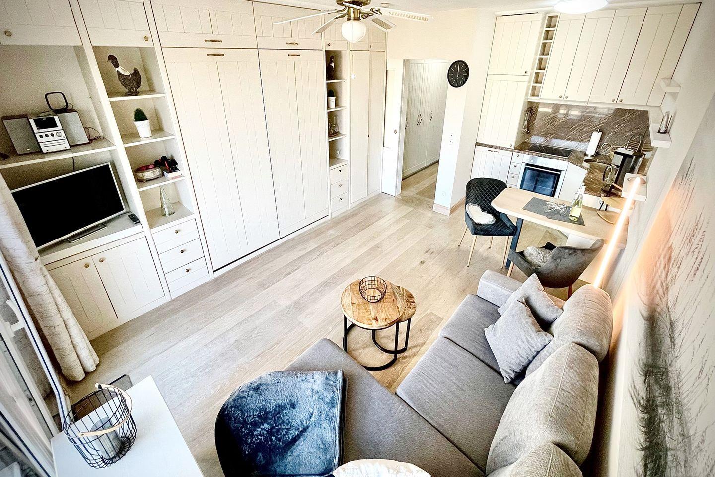 Die Unterkunft liegt im 2. Obergeschoss und hat einen möblierten Balkon nach Westen. Superschöne und liebevoll eingerichtete Ferienwohnung für 2 Personen, komplett renoviert. Dieses Appartement verwöhnt Sie mit allem Komfort für den perfekten Urlaub auf Sylt. WLAN vorhanden (ohne Gewähr)