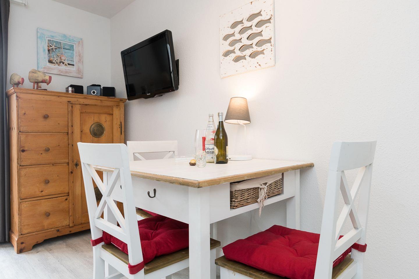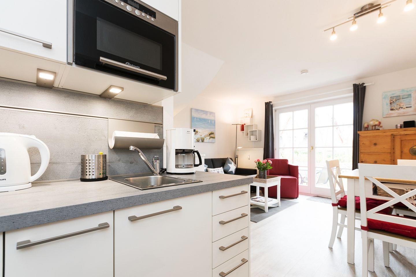 Diese schöne und moderne Ferienwohnung geht über 2 Ebenen. Die Ferienwohnung verfügt über einen Wohnraum mit angrenzender Küchenzeile, sowie einem Schlafzimmer mit sehr bequemen Boxspringbett. Das neu sanierte Badezimmer befindet sich ebenfalls im Untergeschoss des Hauses, wie auch das Schlafzimmer und verfügt über eine Dusche und ein WC. Das Friesenhaus "Witt Hingst“ befindet sich in Alt-Westerland, in ruhiger idyllischer Lage und doch nah zur Innenstadt und zum Strand. Für sonnige Tage sorgen die schöne Terrasse sowie der Garten. WLAN vorhanden (ohne Gewähr)