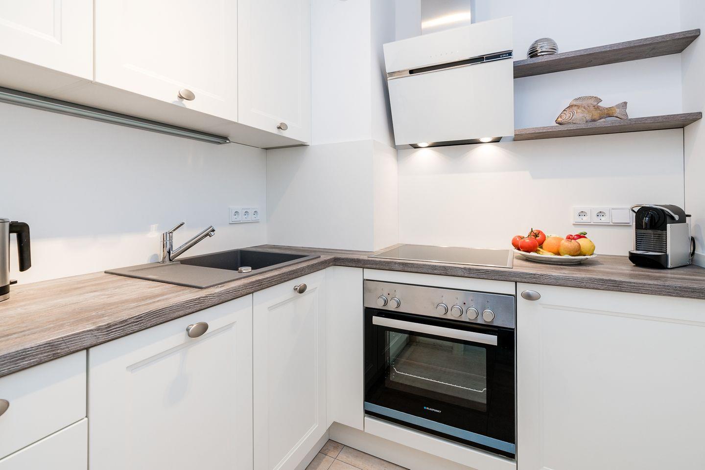Die Wohnung wurde mit sehr viel Liebe zum Detail eingerichtet und ist zudem sehr modern und harmonisch in der Farbgebung. Hier können Sie sich einfach nur wohlfühlen. Durch die Ausrichtung der Wohnung nach Osten, werden Sie von der Sonne wach geküsst. Weiterhin können Sie die Sonne auf dem ebenfalls sehr hübsch möblierten Balkon genießen. In der voll ausgestatteten sep. Küche stehen Ihnen neben Wasserkocher und Toaster sowohl Kaffeemaschine als auch Nespressomaschine zur Verfügung. WLAN vorhanden (ohne Gewähr)