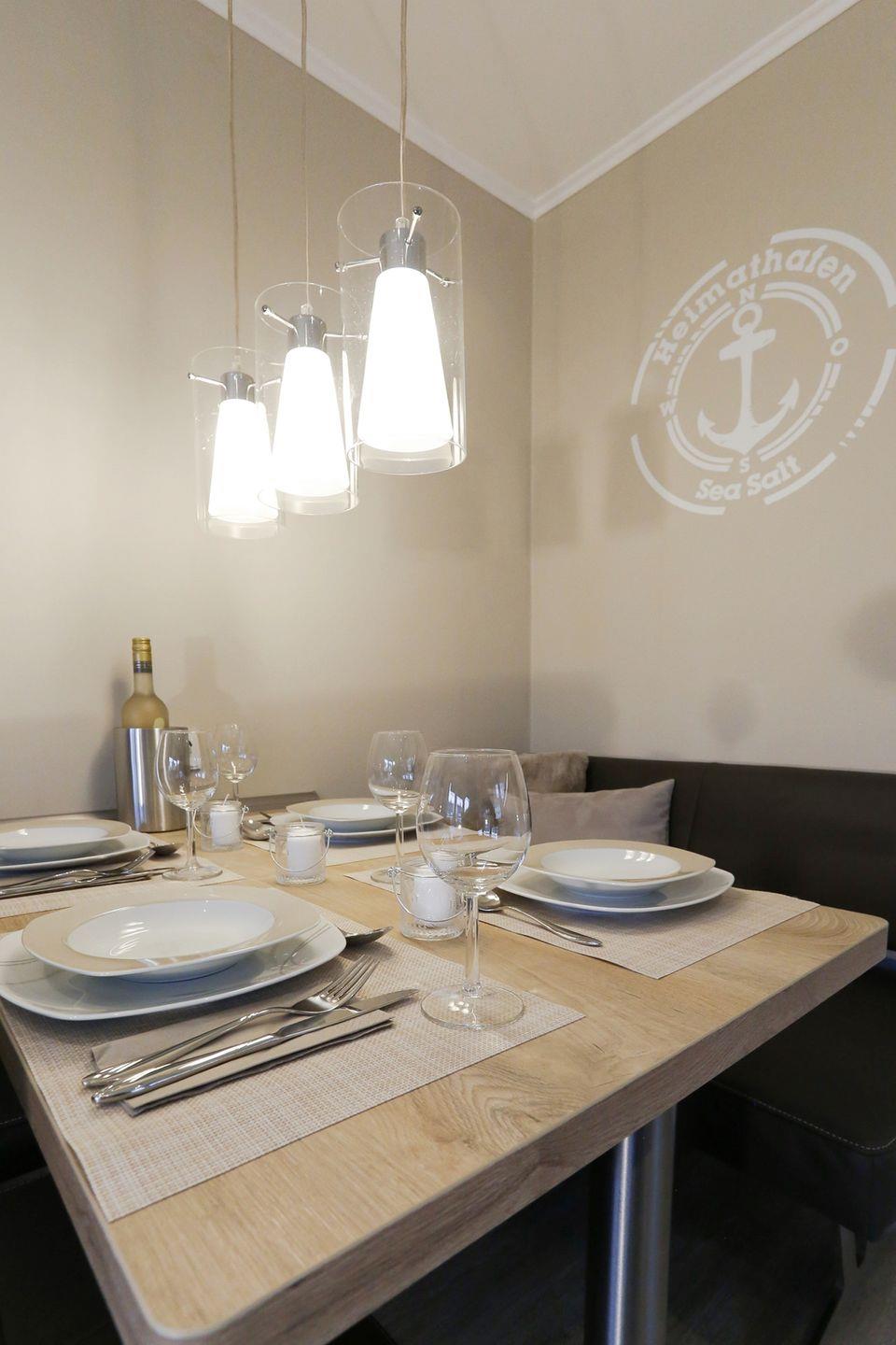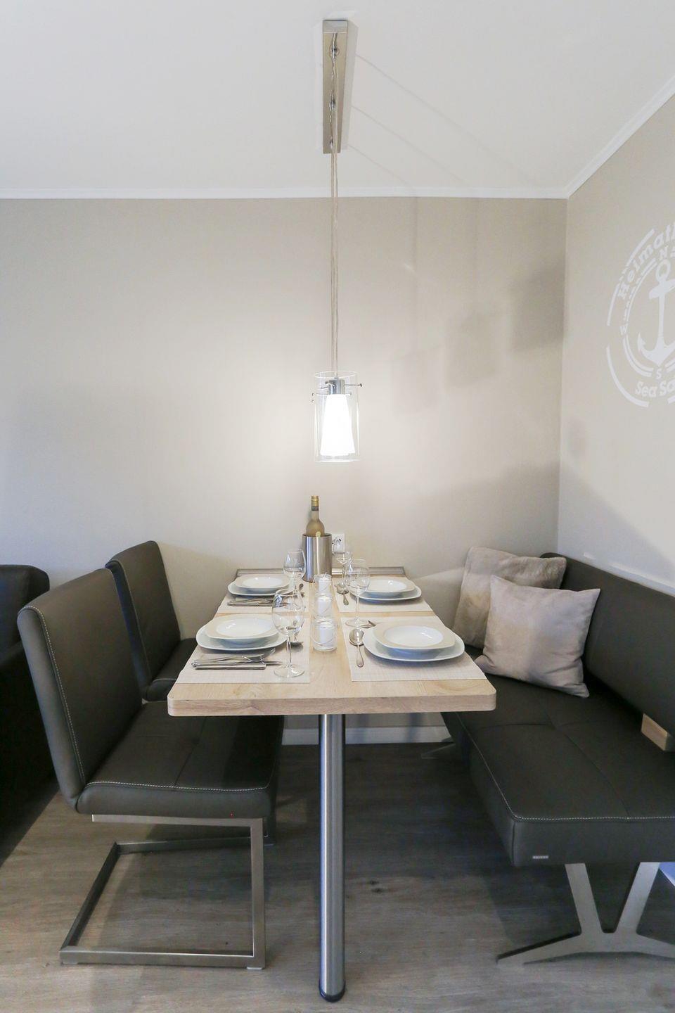 gemütlicher kleiner Essbereich mit Lederbank und Stühlen für 4 Personen