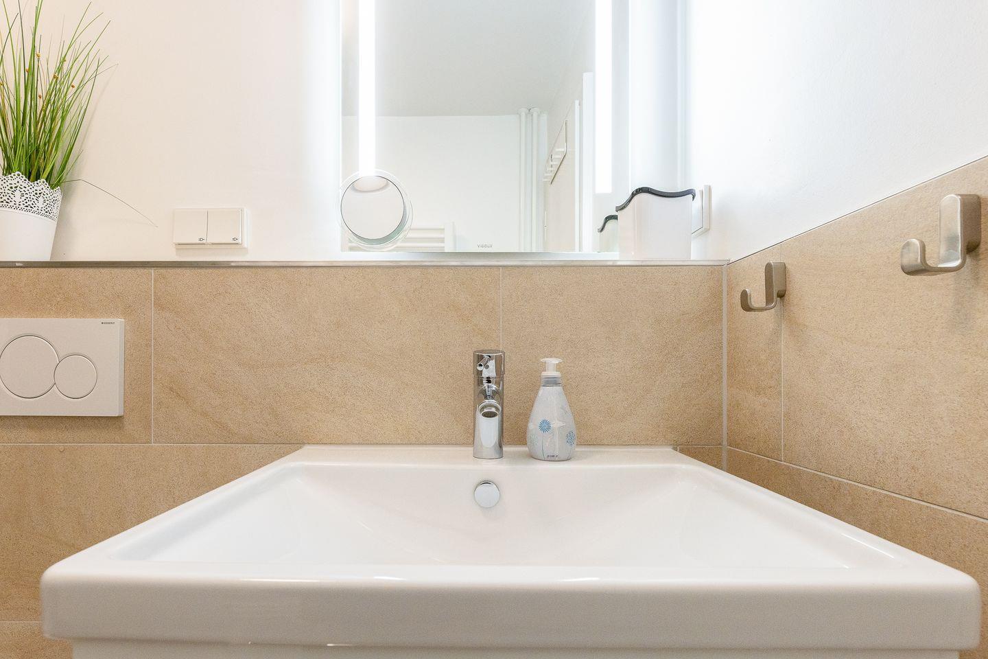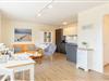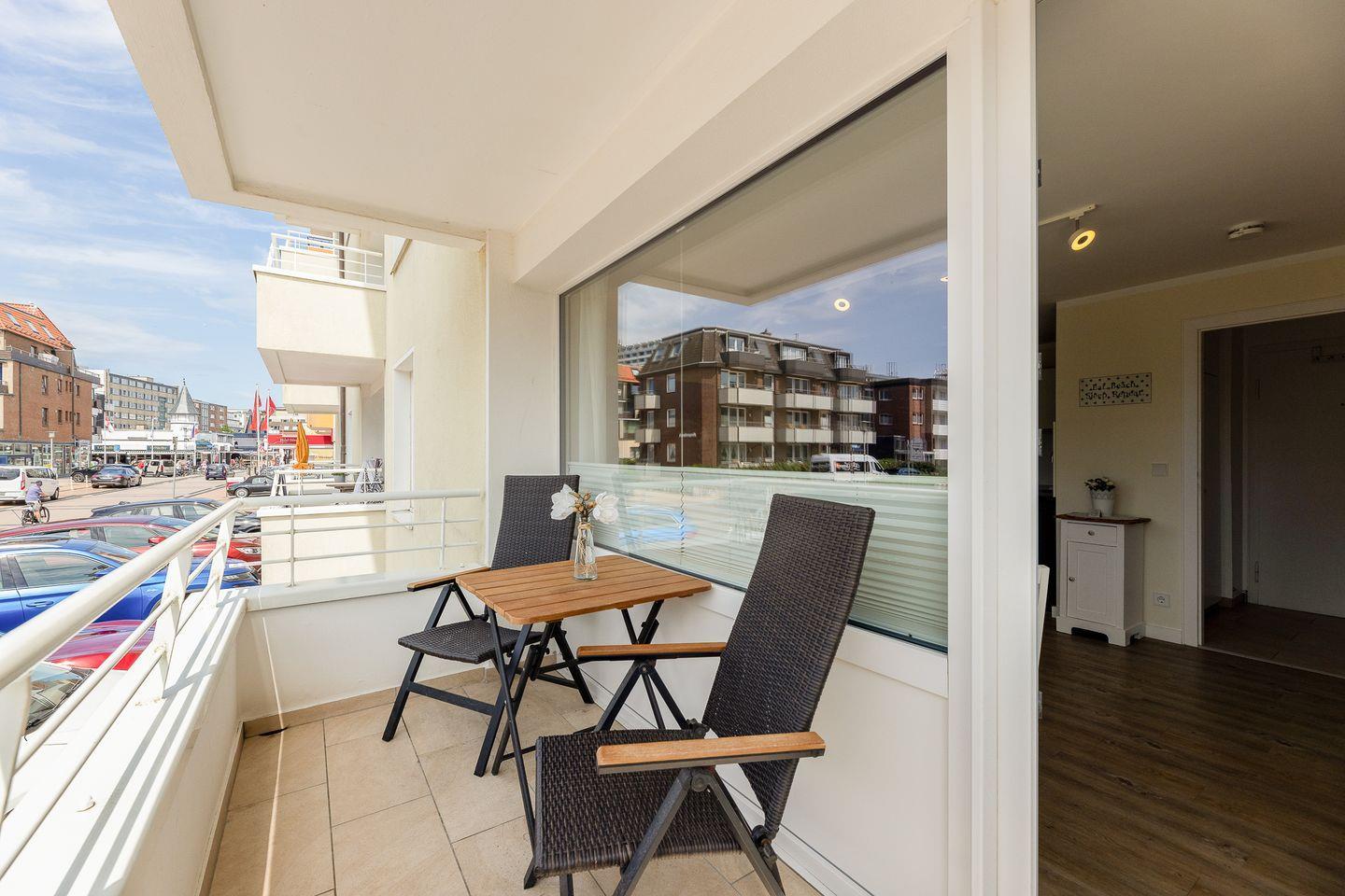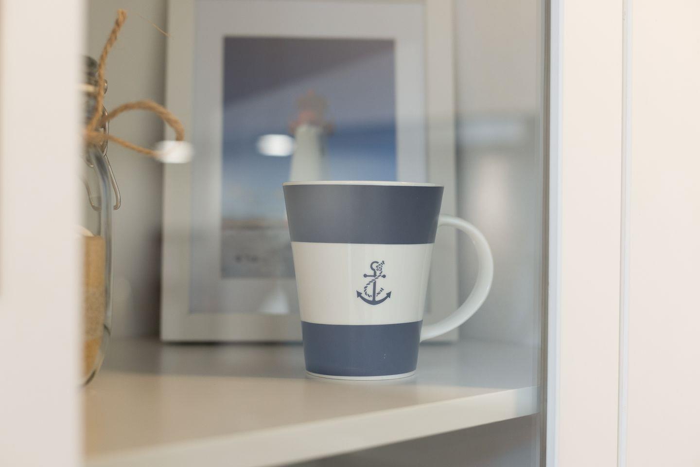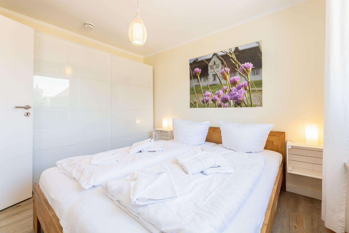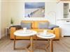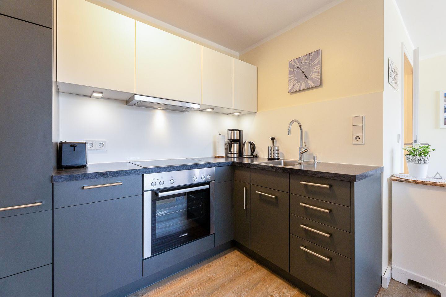 Liebevolle Details und dezente Farbakzente, laden hier auch das Auge zum urlauben ein. Herzstück ist das gemütliche Wohnzimmer mit Couch, offener Küche sowie einem kleinem Essbereich mit Ausblick auf den Westbalkon. Die Küche ist nicht nur ein schicker Hingucker, sondern auch mit hochwertigen Geräten ausgestattet. Im Schlafzimmer befinden sich ein bequemes Doppelbett und ein Kleiderschrank. Das helle Bad verfügt über eine große Dusche und genügend Stauraum.