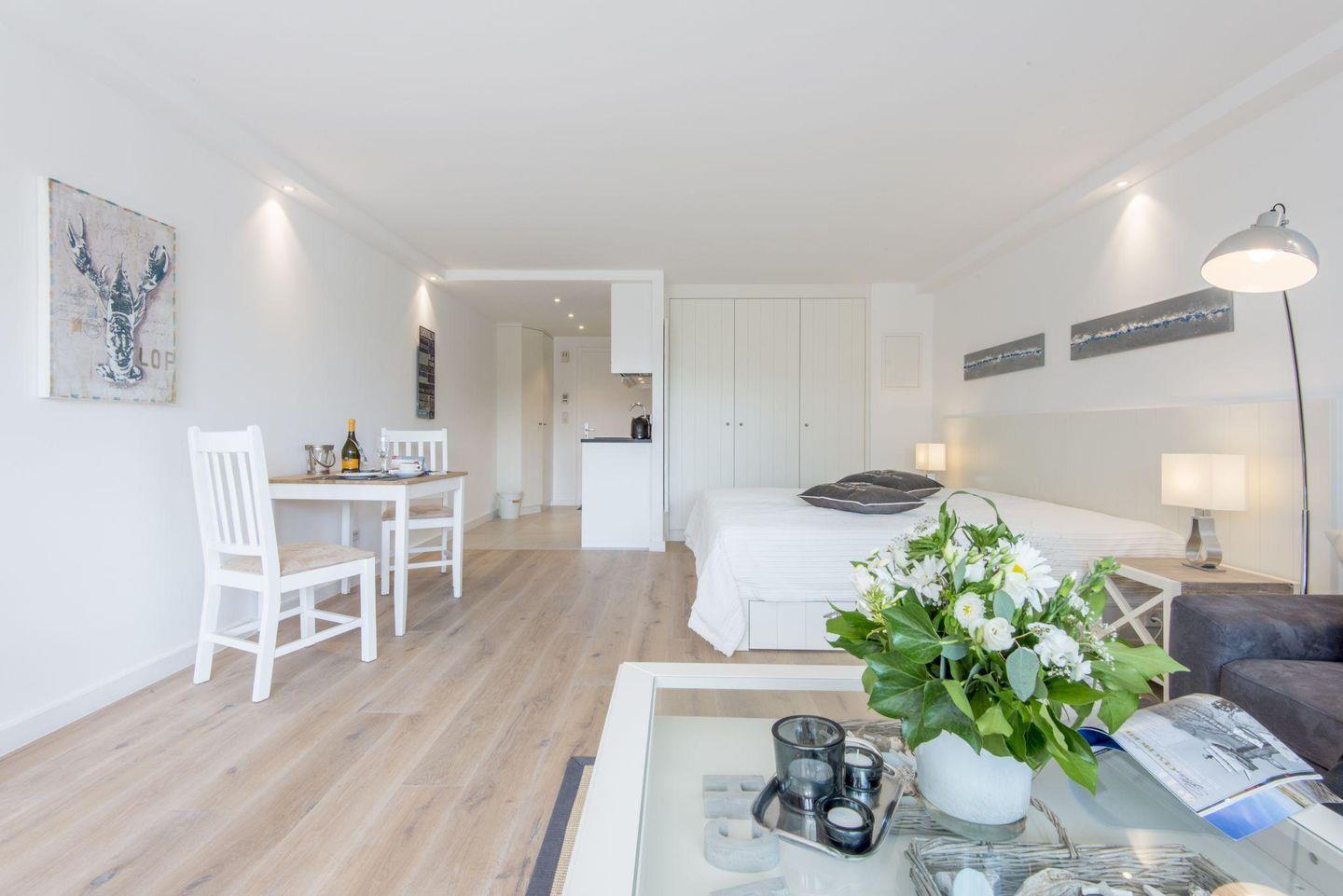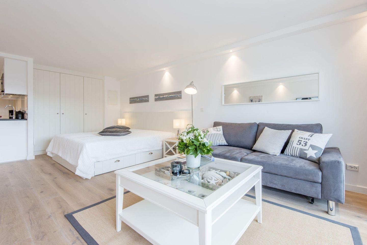 1-Zimmer-Ferienwohnung auf einer Ebene (1. OG) in Westerland mit ca. 42 qm für bis zu 2 Personen.