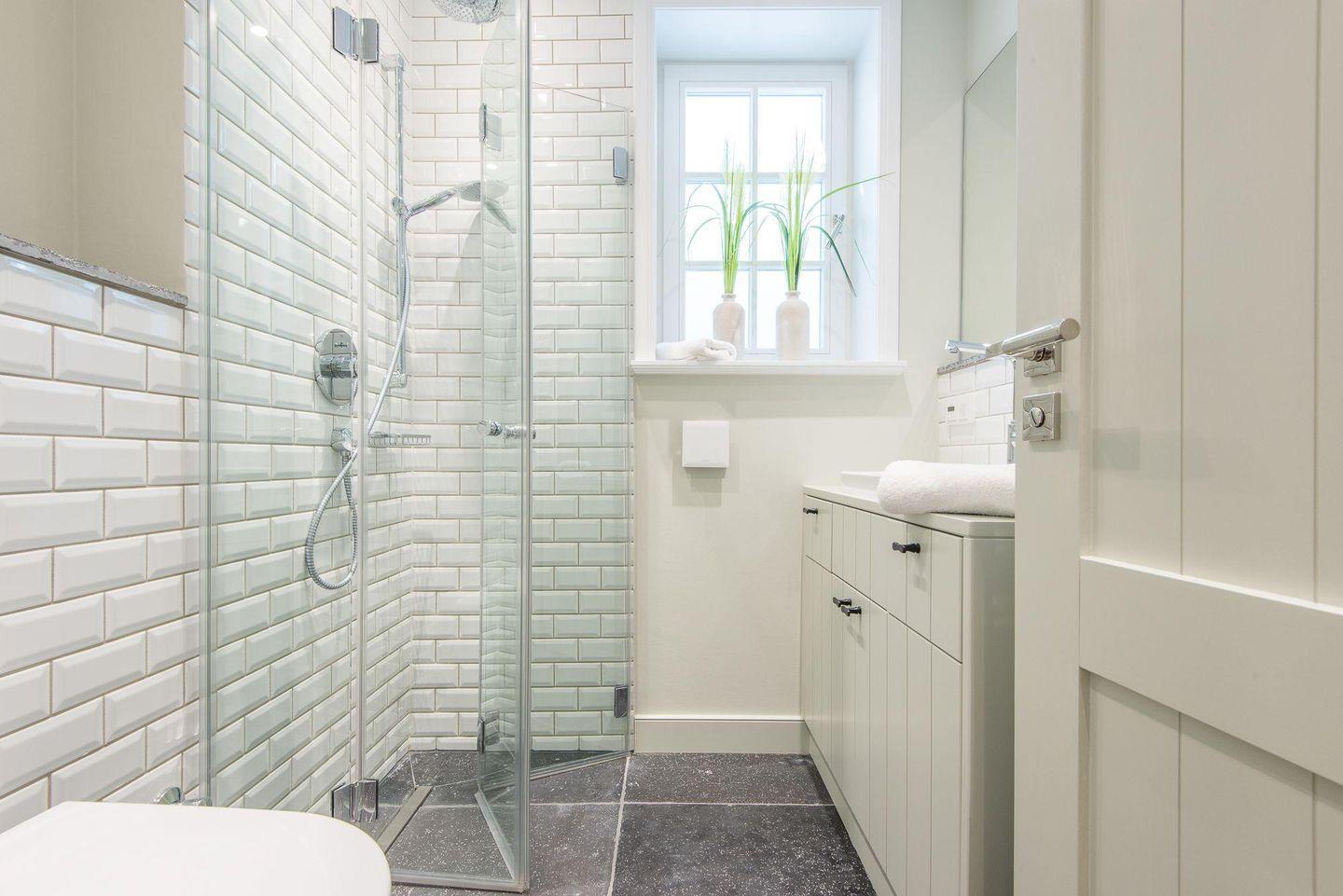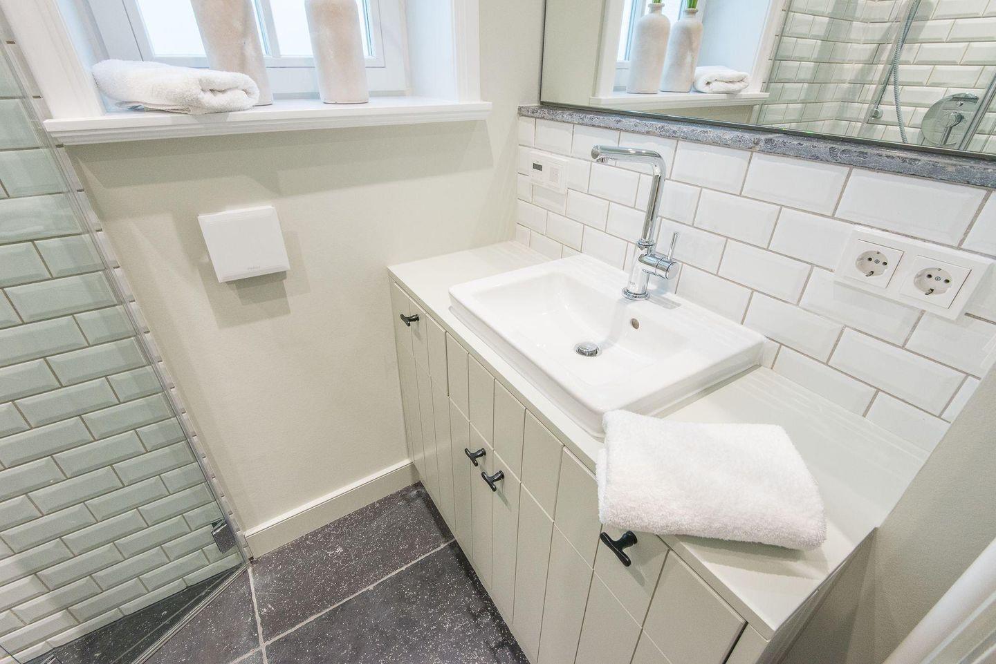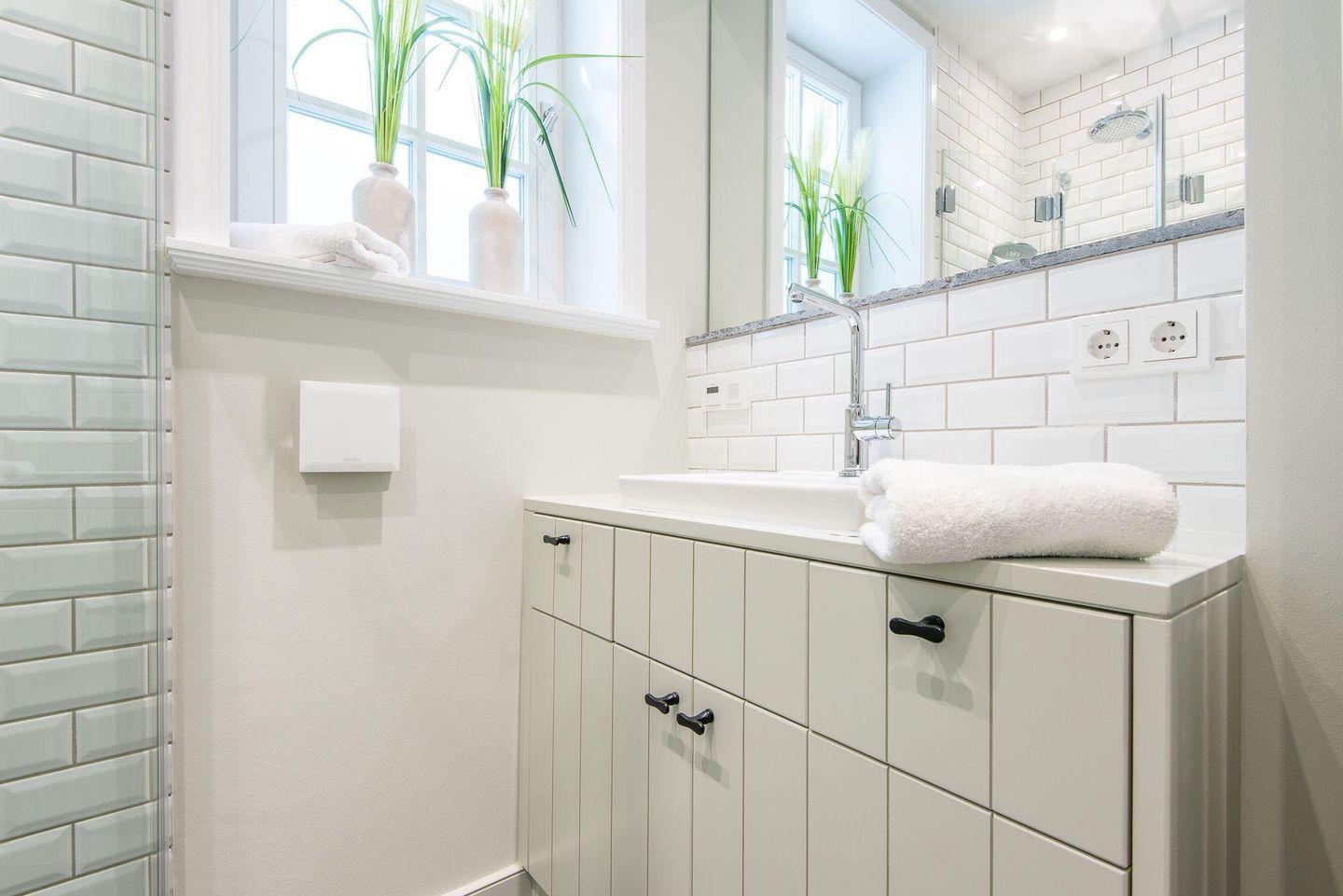 Das elegante Badezimmer mit Tageslicht verfügt über eine ebenerdige Dusche, WC, Handtuchwärmer und Föhn und bietet modernen Komfort. Für zusätzliche Flexibilität sorgt ein zweites Duschbad. Der exklusive Wellnessbereich des Hauses mit Sauna, Dampfbad und Schwalldusche sorgt für entspannte Wohlfühlmomente nach einem ereignisreichen Tag.
