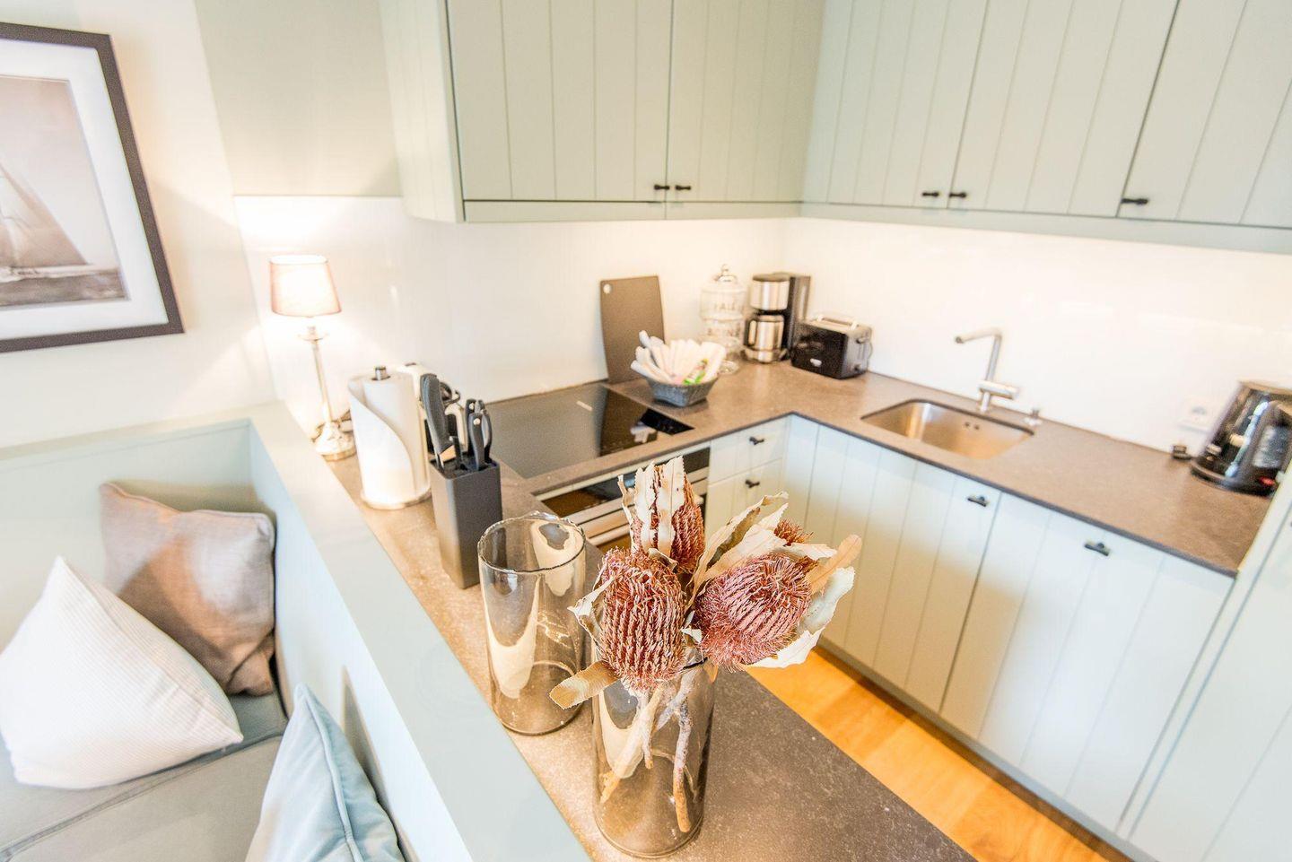 Die halb offene Küche ist mit allen modernen Geräten ausgestattet, die Sie für die Zubereitung Ihrer Lieblingsgerichte benötigen. Ein Cerankochfeld, Geschirrspüler und eine Filterkaffeemaschine machen die Küchenausstattung perfekt für einen angenehmen Aufenthalt.