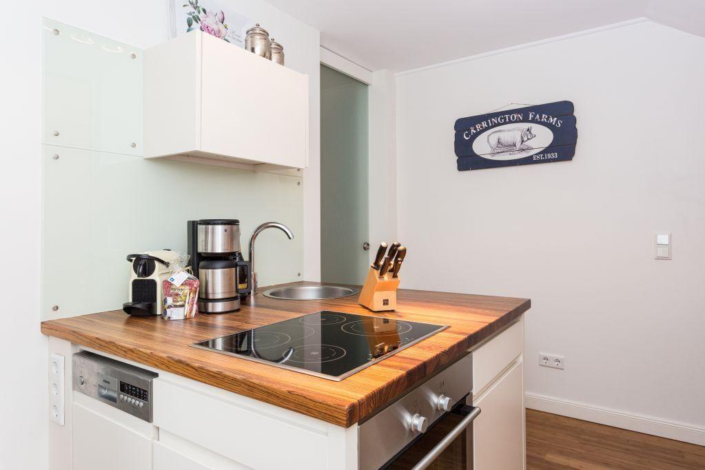 Die halboffene Küche ist modern ausgestattet und verfügt über eine Filterkaffeemaschine, eine Nespresso-Maschine und alles, was Sie für Ihren Aufenthalt benötigen.