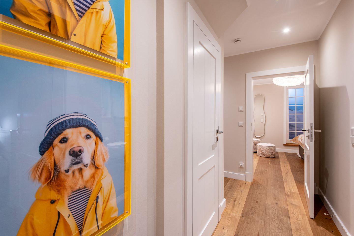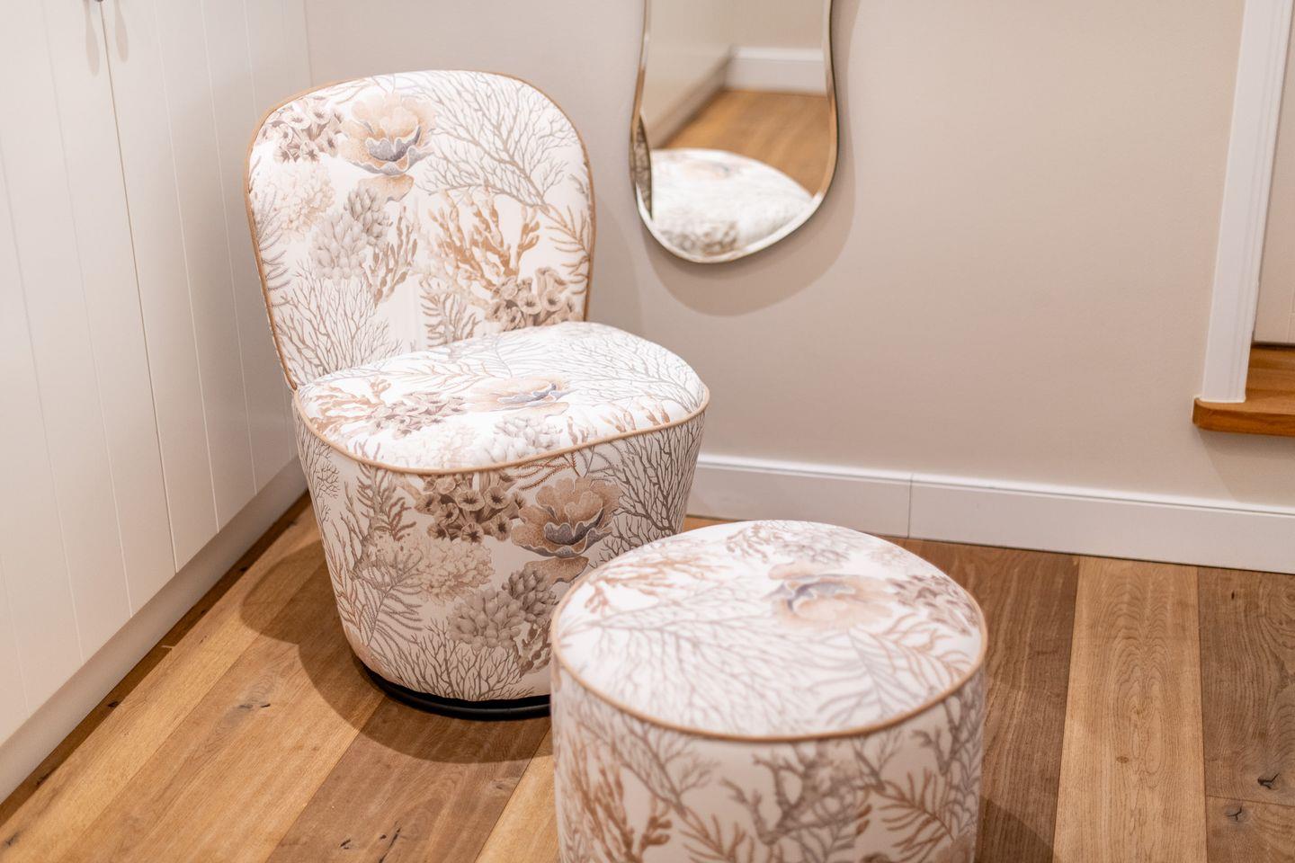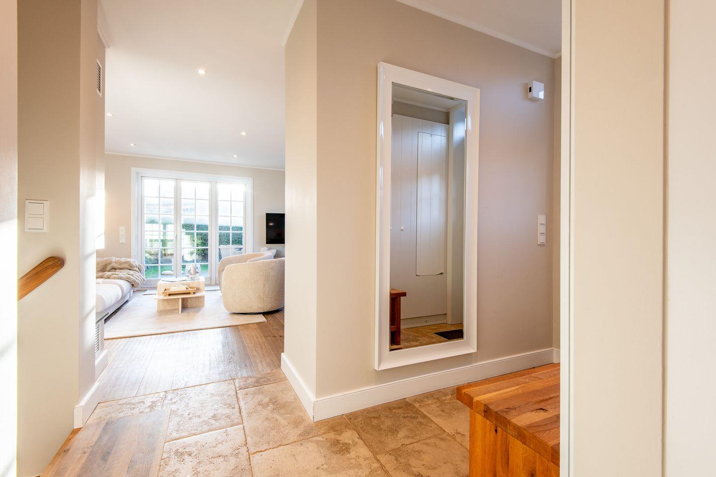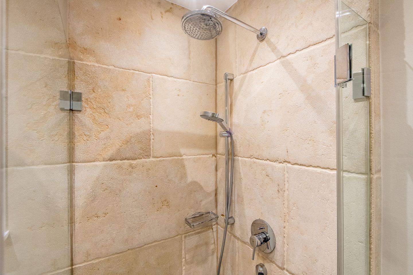 Das moderne Badezimmer verfügt über eine ebenerdige Dusche, WC, Handtuchwärmer, Föhn und Tageslicht. Ein separates Gäste-WC bietet zusätzlichen Komfort. Im gemeinschaftlichen Wellnessbereich des Hauses finden Sie eine Sauna, ein Dampfbad und eine erfrischende Schwalldusche – ideal zum Entspannen nach einem ereignisreichen Tag.