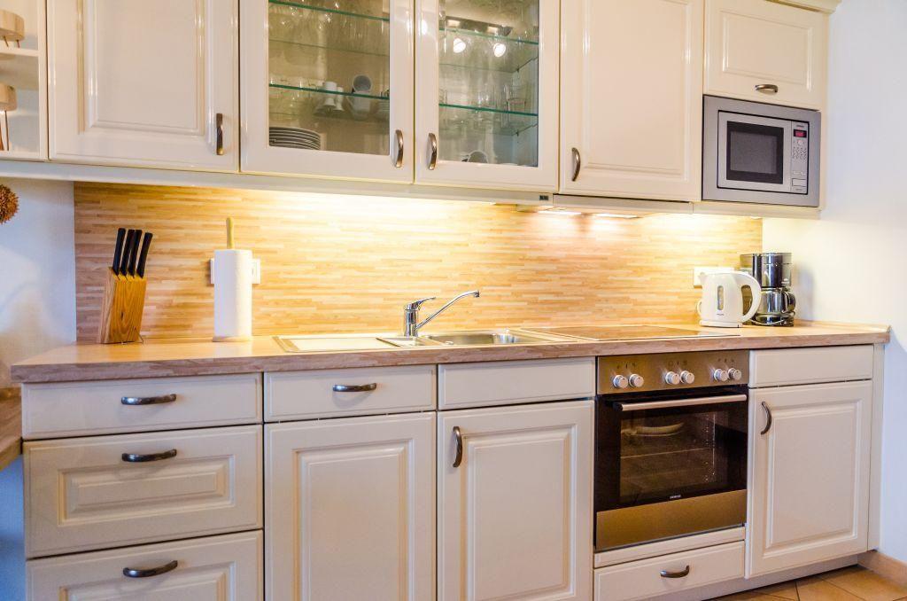 Die elegante Küche bietet mit einem 4-flammigen Herd, Geschirrspüler und sämtlichem modernen Komfort alles, was Sie für Ihre Selbstversorgung benötigen.