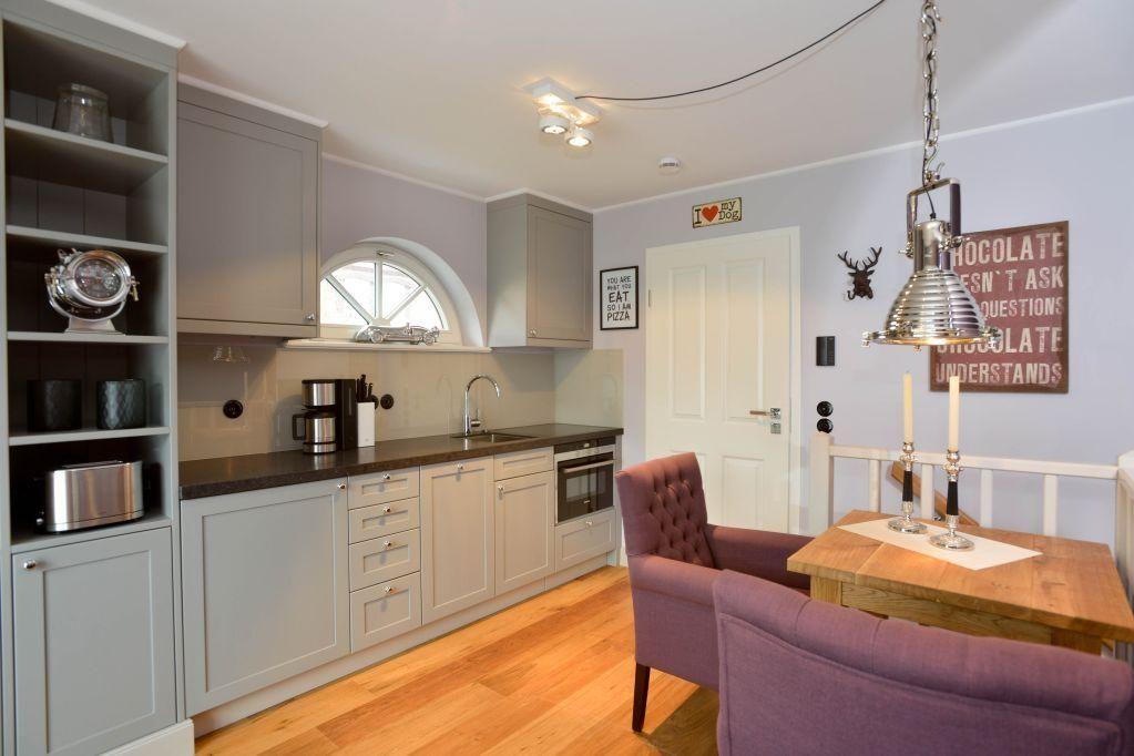 Die offene Küche ist hochwertig ausgestattet und bietet Ihnen mit einem 4-flammigen Induktions-Herd, Geschirrspüler und Filterkaffeemaschine alles, was Sie für die Zubereitung Ihrer Lieblingsgerichte benötigen.