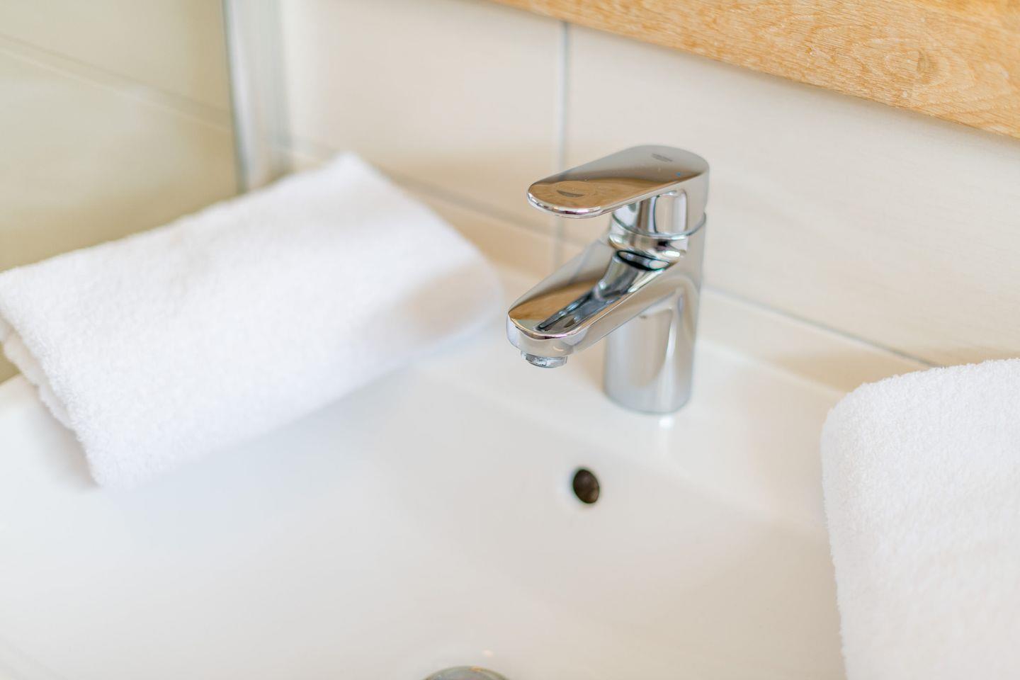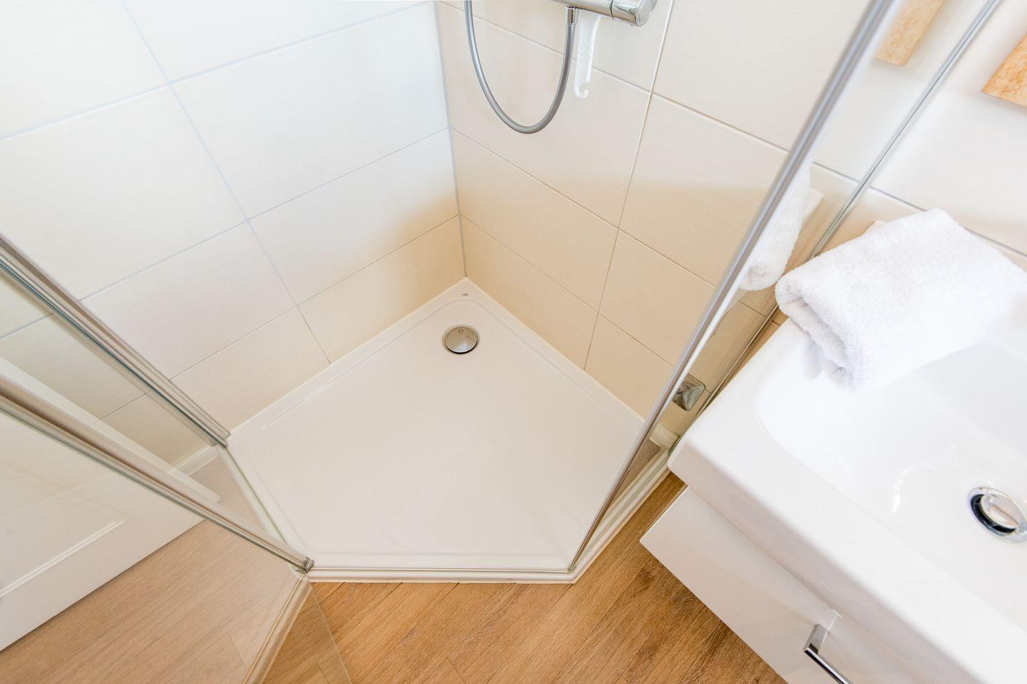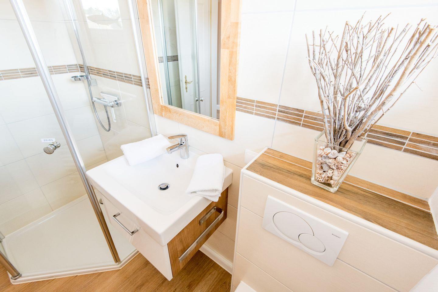 Das Schlafzimmer verfügt über ein Doppelbett (2x 90x200 cm) und einen Kleiderschrank mit viel Stauraum. Das Badezimmer bietet eine Dusche, WC, Tageslicht sowie Annehmlichkeiten wie einen Föhn und Handtuchwärmer.