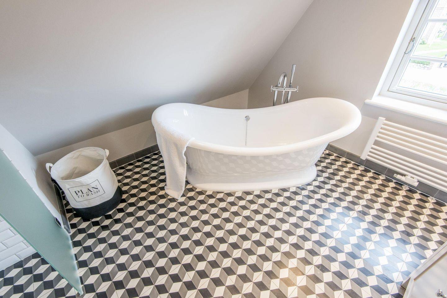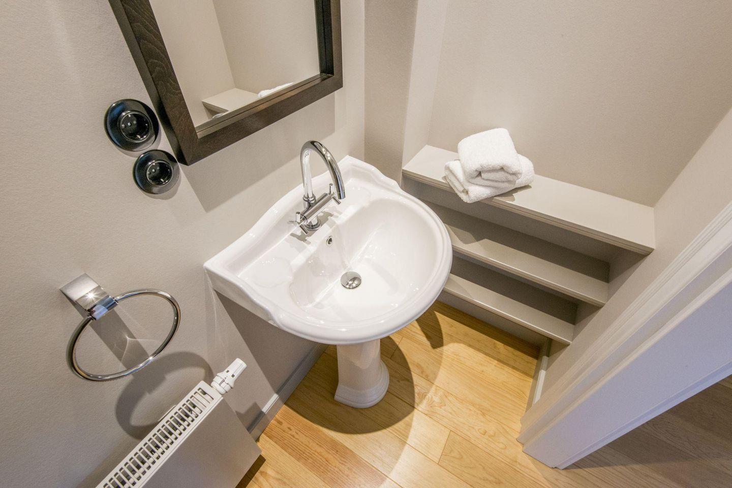 Das zweite Badezimmer verfügt über eine geräumige Dusche, WC, Handtuchwärmer, Föhn und Tageslicht – ein wunderbarer Ort, um sich nach einem Tag am Strand oder einer Wanderung zu erfrischen. Zudem erwartet Sie ein großzügiger Wellnessbereich mit Sauna im Haus, der zur Entspannung einlädt.