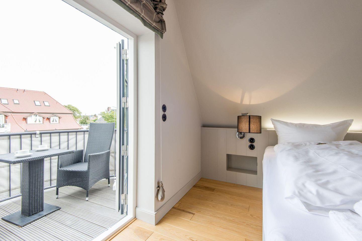 Das zweite Schlafzimmer ist mit einem komfortablen Doppelbett (2x 80x200 cm), Schreibtisch und TV ausgestattet und bietet eine stilvolle Ruheoase. Das dritte Schlafzimmer im Dachgeschoss verfügt über zwei Einzelbetten (je 90x200 cm), einen Einbauschrank, einen Schreibtisch und TV – ideal für entspannte Nächte.