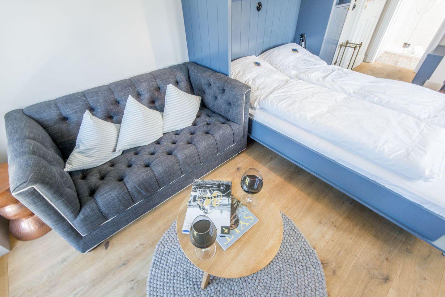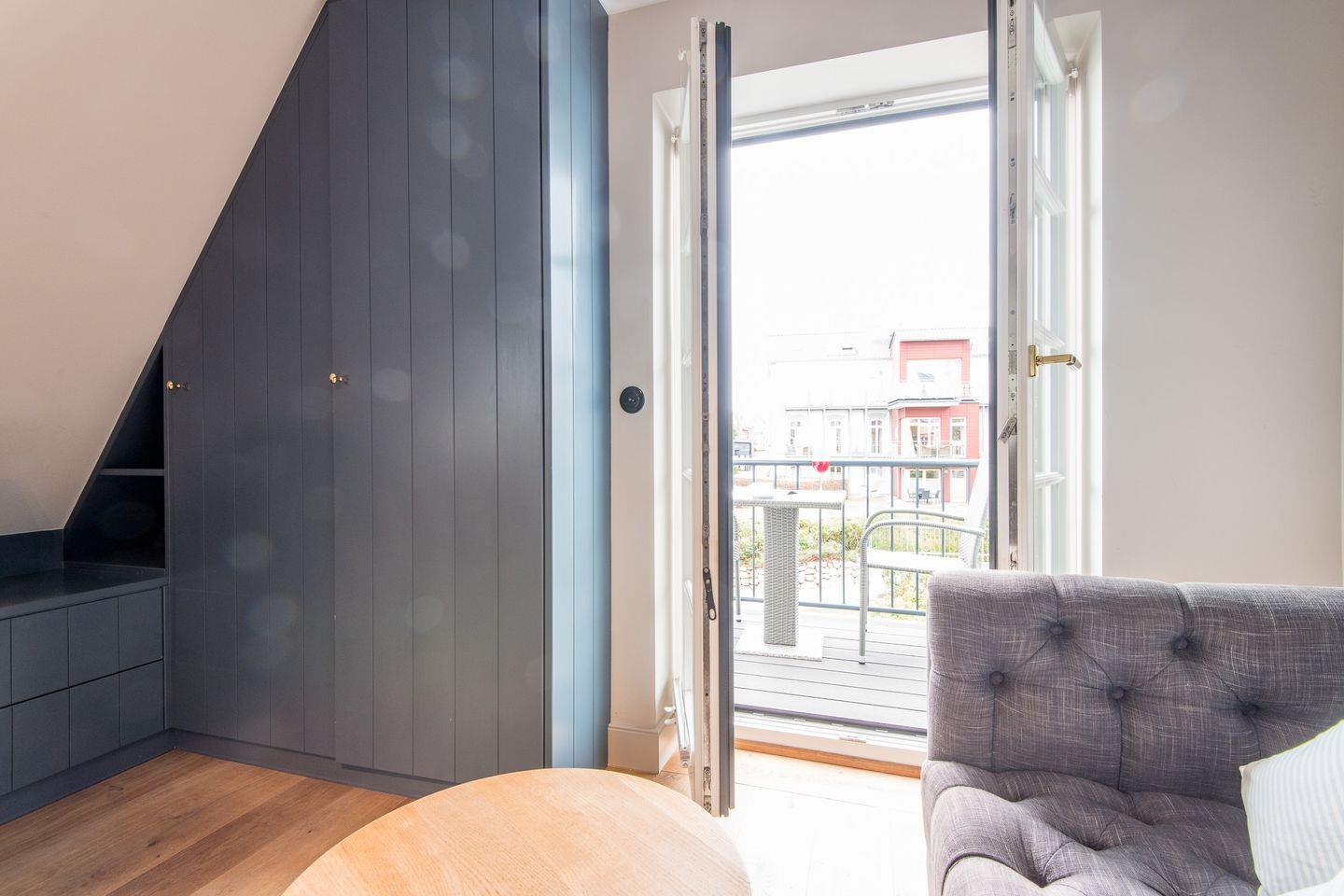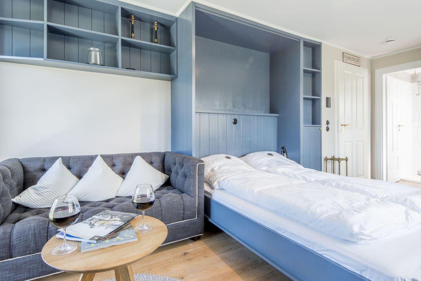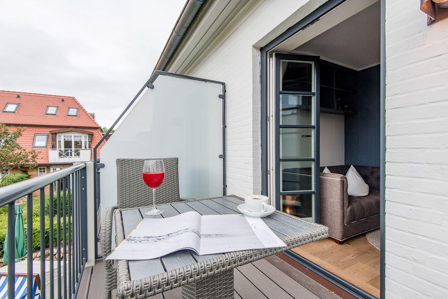 Die stilvolle 1-Zimmer-Ferienwohnung *Blauer Salon* im ersten Obergeschoss der Villa Maybach bietet auf ca. 30 m² Raum für bis zu 2 Personen. Die zentrale Lage in Westerland auf Sylt und die hochwertige Ausstattung mit exklusivem Wellnessbereich machen dieses Domizil zur perfekten Wahl für entspannte Urlaubstage. Einladend gestaltet und lichtdurchflutet, sorgt die Wohnung mit einem Balkon nach Westen und einem Sonnenfreisitz mit Strandkorb für wohltuende Entspannungsmomente.