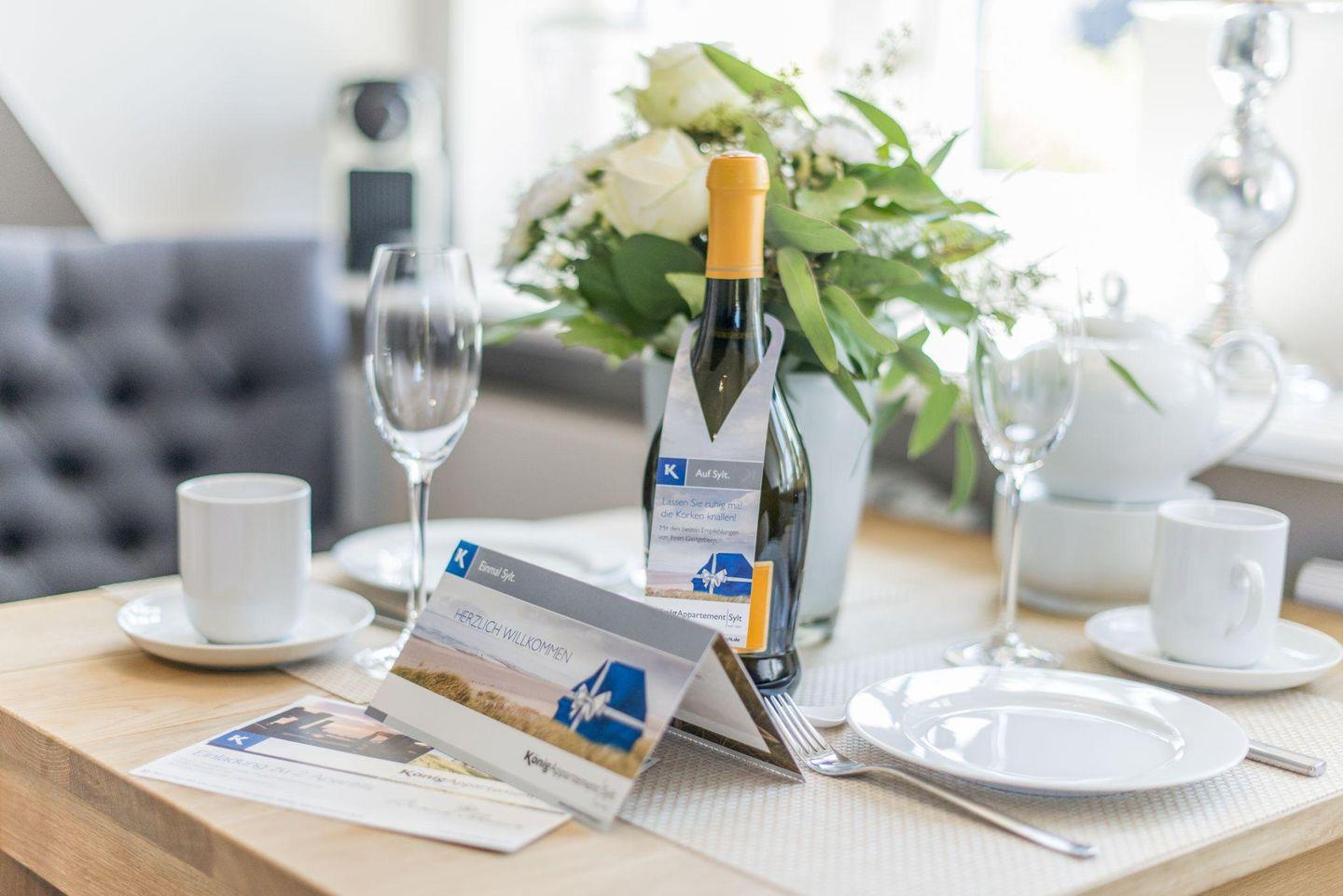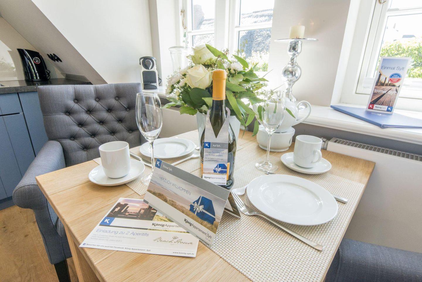 Die offene Küche ist voll ausgestattet und bietet Ihnen alles, was Sie für die Zubereitung köstlicher Mahlzeiten benötigen. Ein Induktionsherd mit 4 Kochfeldern, ein Geschirrspüler sowie Filterkaffeemaschine und Wasserkocher sorgen für hohen Komfort.