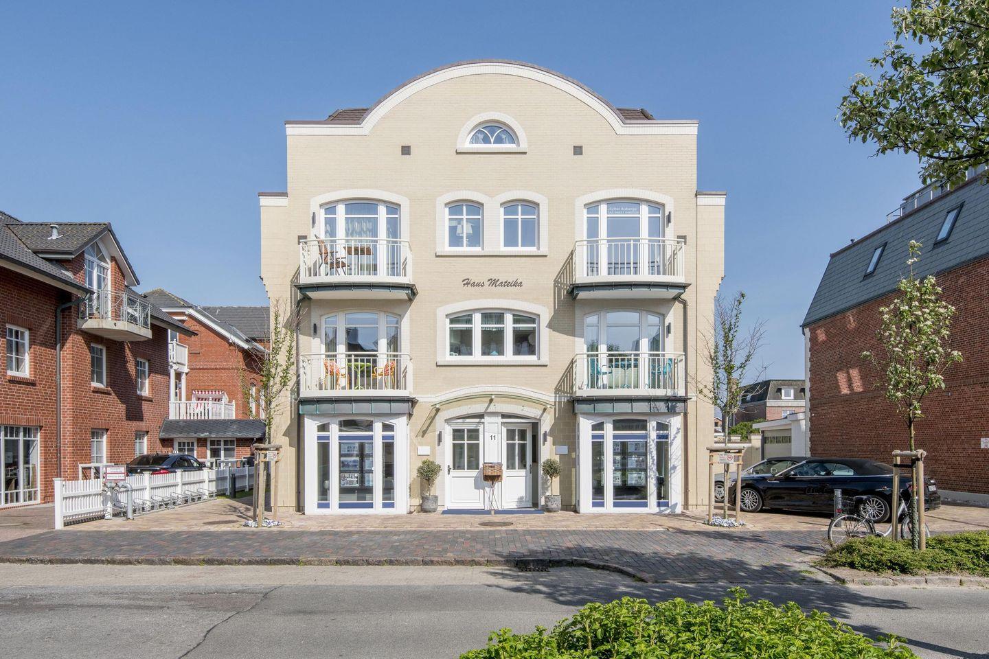Diese stilvolle 1-Zimmer-Ferienwohnung im Haus Mateika bietet auf ca. 32 m² modernen Komfort und eine gemütliche Atmosphäre für bis zu 2 Personen. Zentral und dennoch ruhig gelegen, ist sie ein idealer Rückzugsort in Westerland. Ein einladender Balkon nach Osten, Fußbodenheizung und der hauseigene Wellnessbereich schaffen beste Voraussetzungen für eine erholsame Zeit auf Sylt.