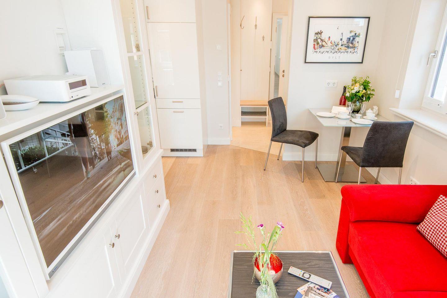 Die offene Küche ist mit modernen Geräten ausgestattet und bietet alles, was Sie für die Zubereitung Ihrer Lieblingsgerichte benötigen. Neben einem Cerankochfeld und einer Mikrowelle verfügt die Küche über eine Nespresso-Maschine, einen Geschirrspüler und weitere Annehmlichkeiten für einen bequemen Aufenthalt.