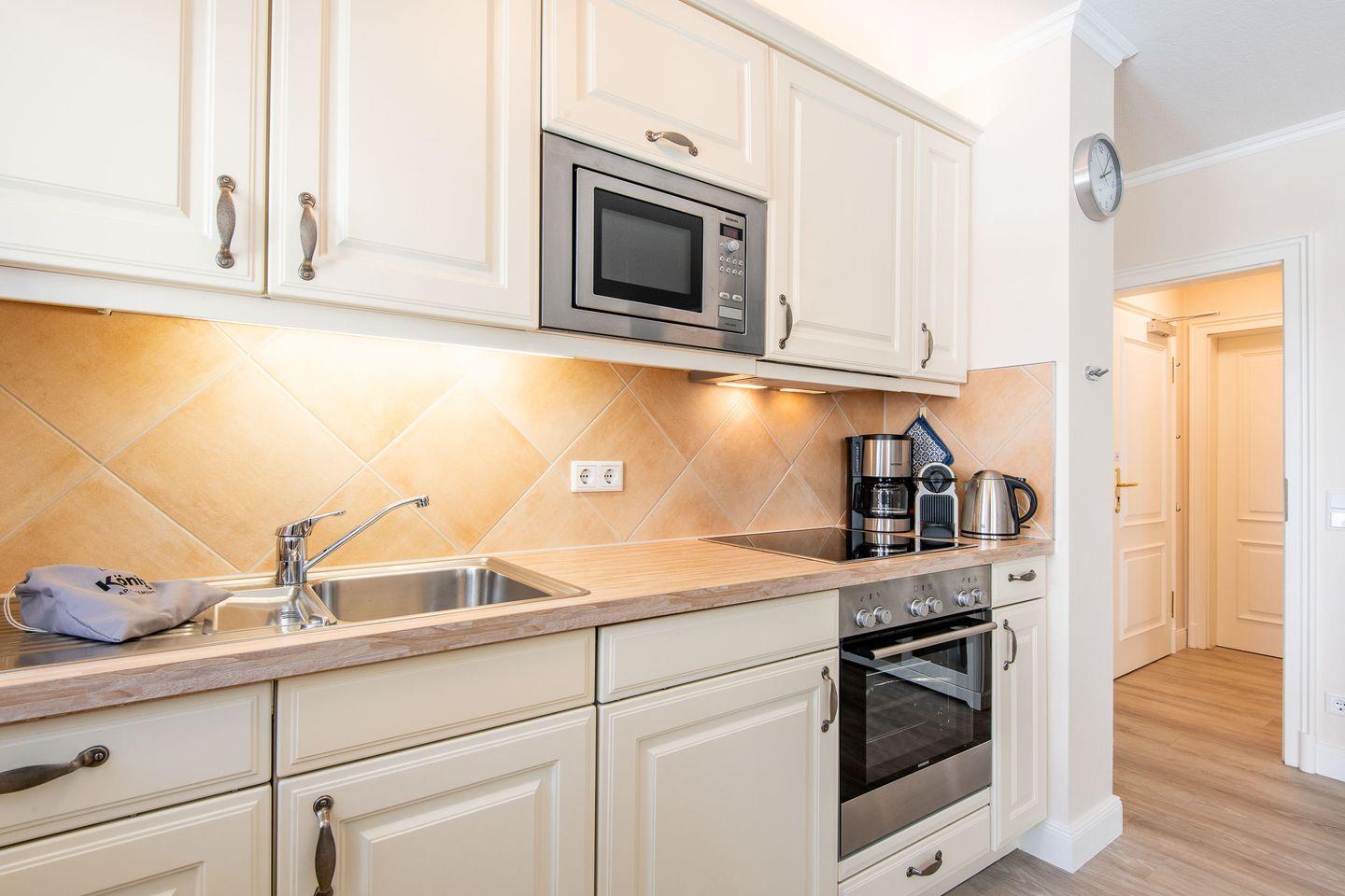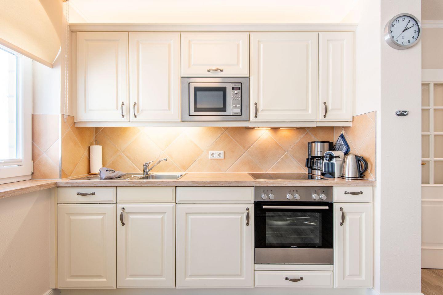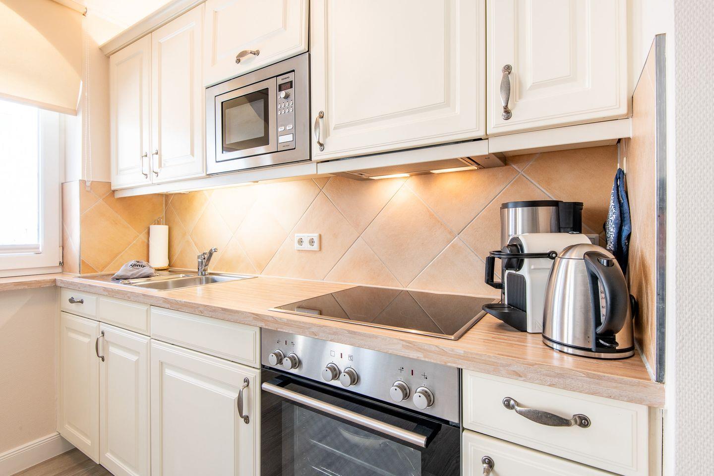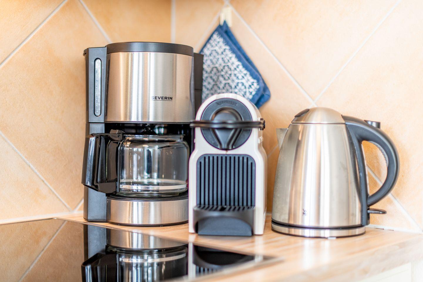 Die voll ausgestattete Küche lässt keine Wünsche offen und verfügt über einen Backofen, Herd, Filterkaffeemaschine, Nespresso-Maschine und Geschirrspüler – ideal für entspanntes Kochen im Urlaub.