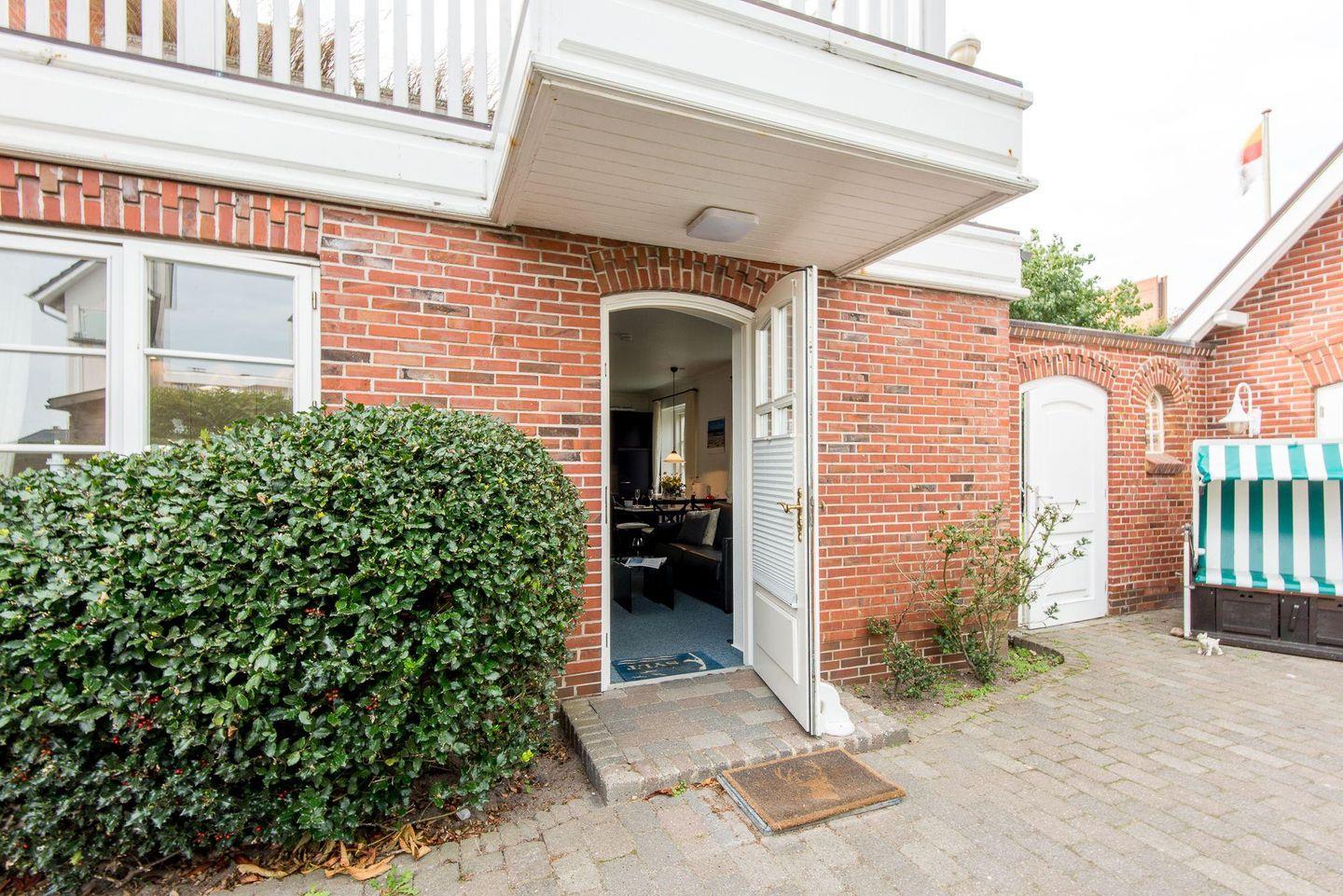 Ein besonderes Highlight dieser Ferienwohnung ist der sonnige Platz vor dem Haus, der mit einem Strandkorb ausgestattet ist. Hier können Sie bei schönem Wetter die frische Nordseeluft genießen, sich entspannen und den Tag Revue passieren lassen.