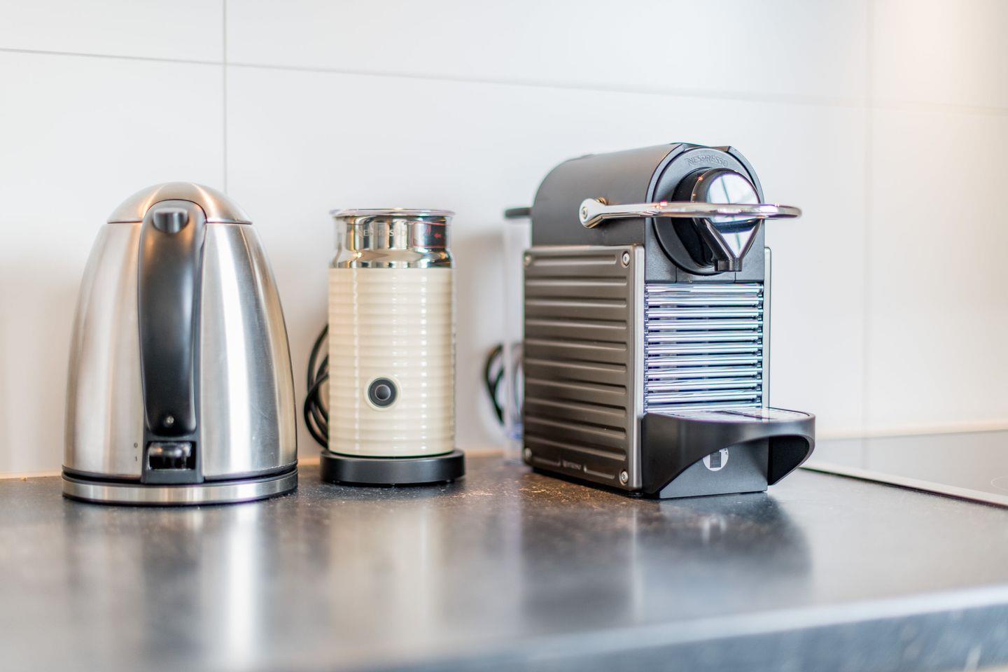 Die offene Küche bietet viel Komfort und ist mit einem Cerankochfeld, Geschirrspüler, Mikrowelle, Filterkaffeemaschine, Nespresso-Maschine und Milchaufschäumer ausgestattet – perfekt für Ihre Mahlzeiten und den entspannten Start in den Tag.